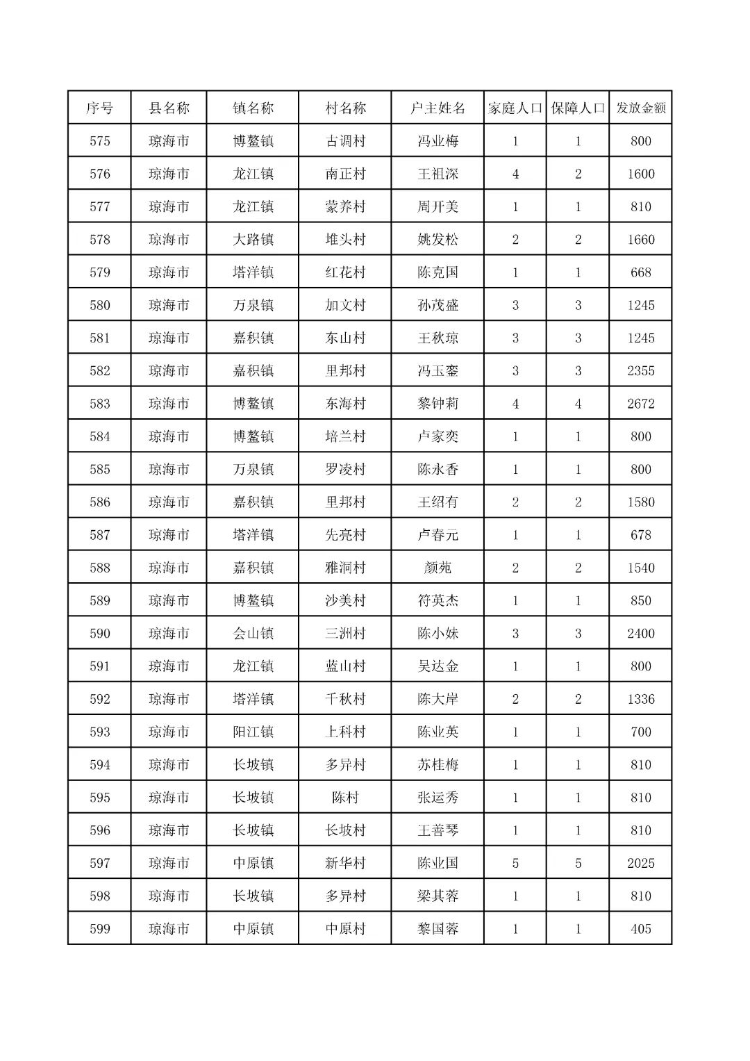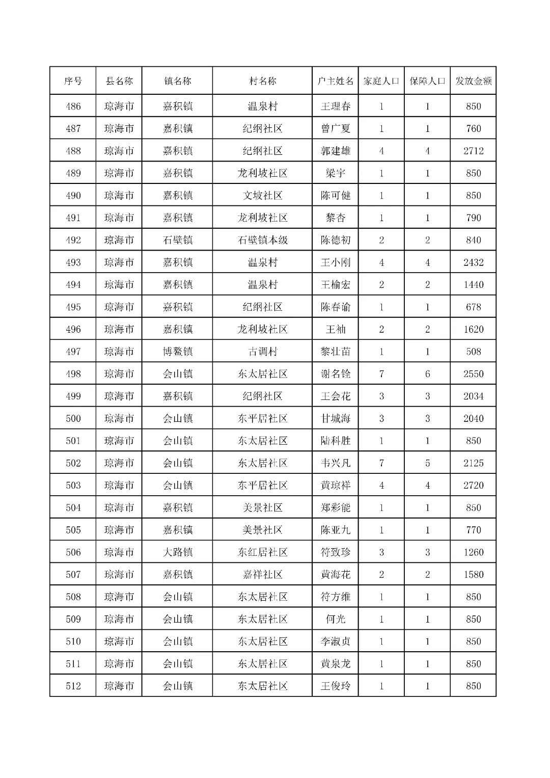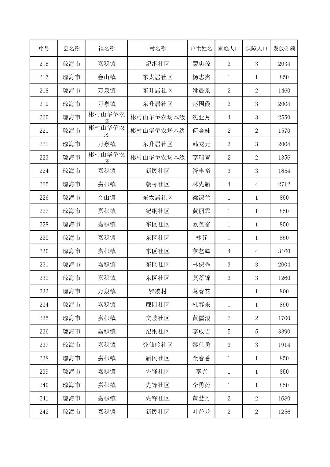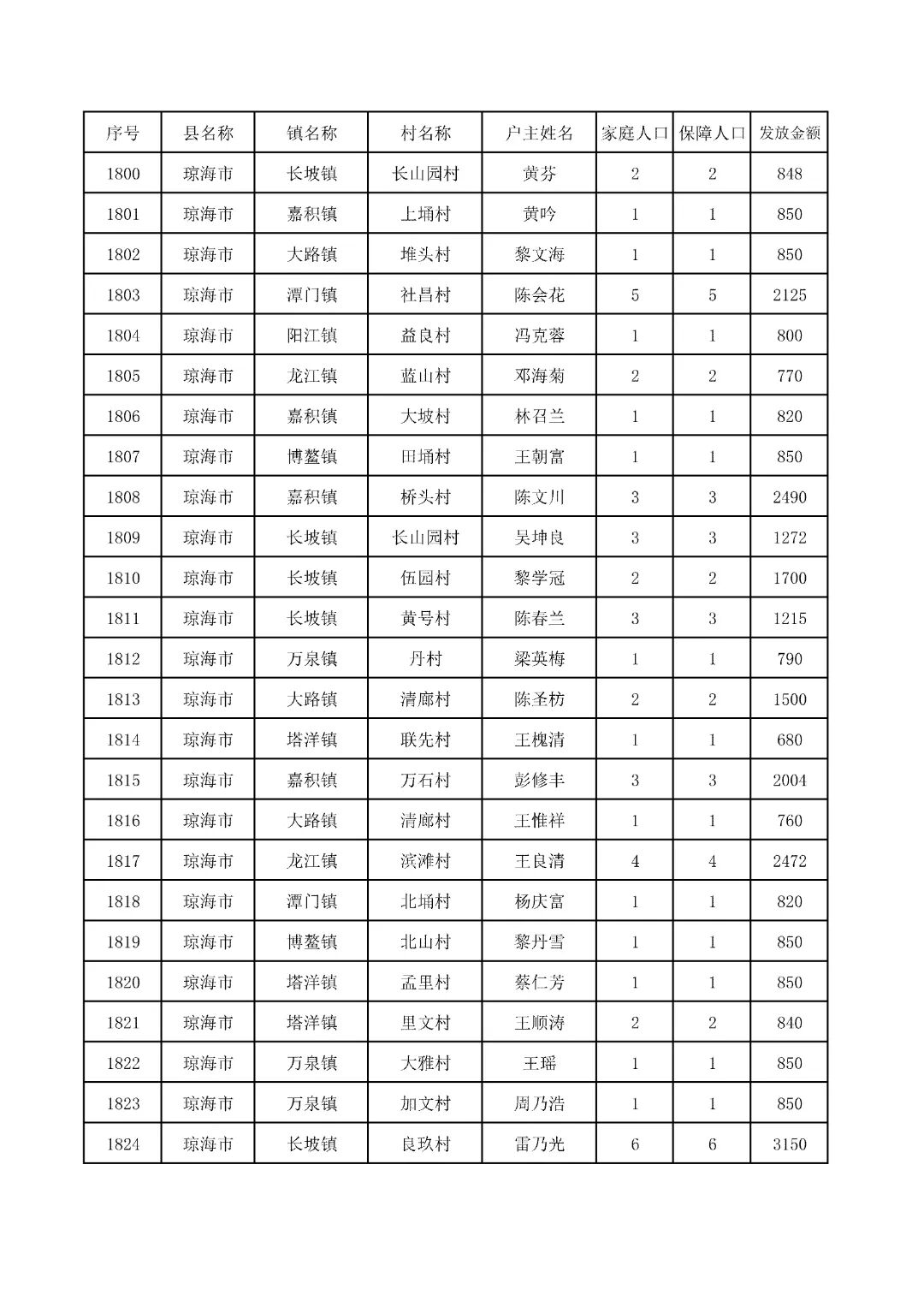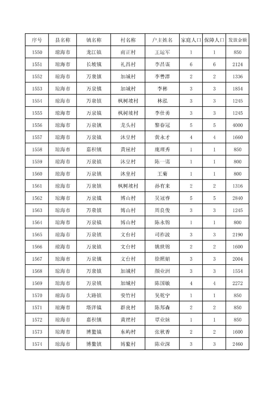 琼海市 2026年1月份城乡低保、特困人员长期公示 ...