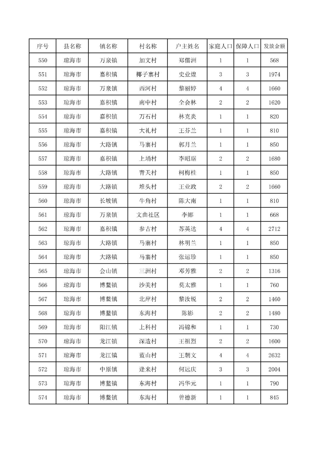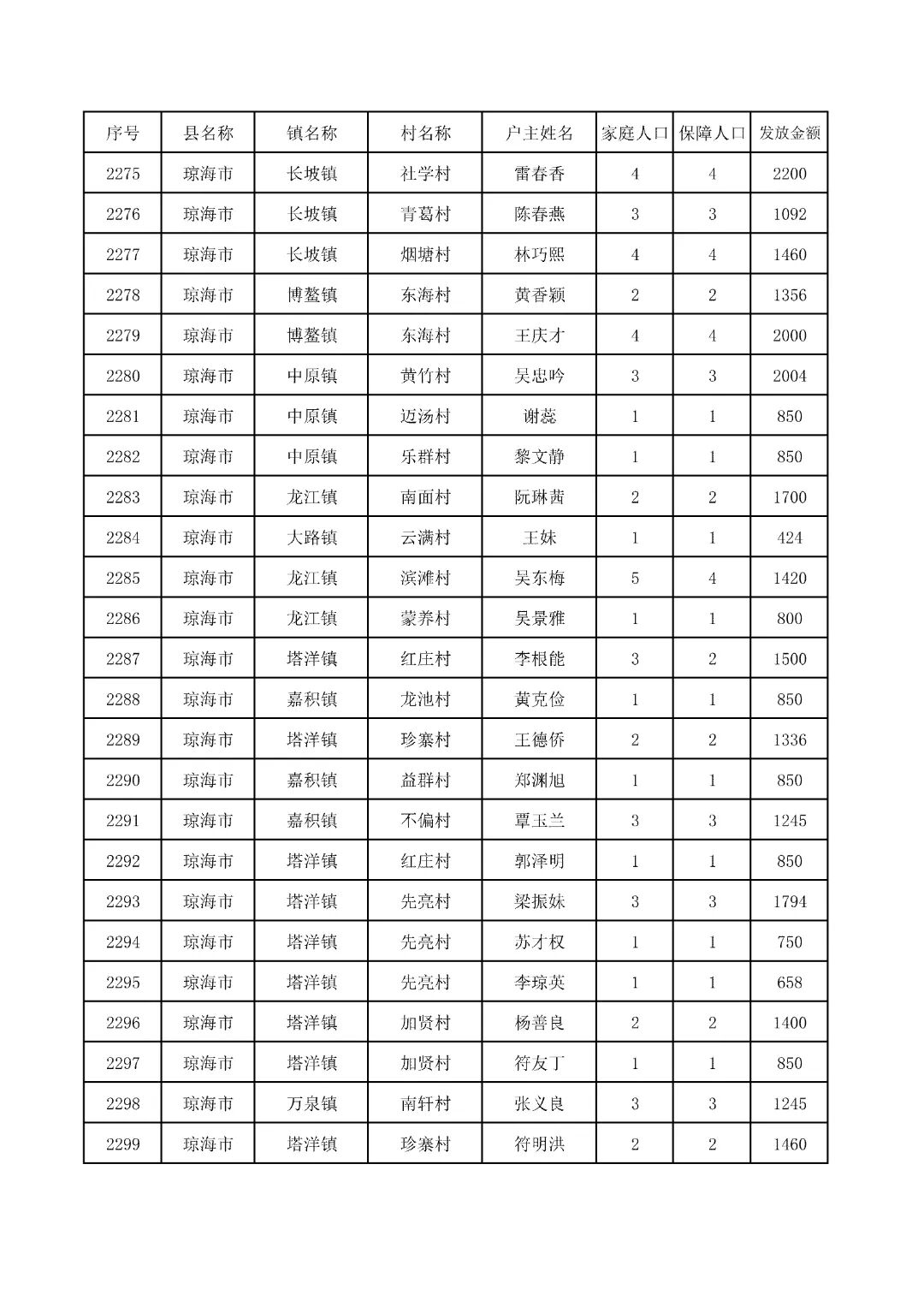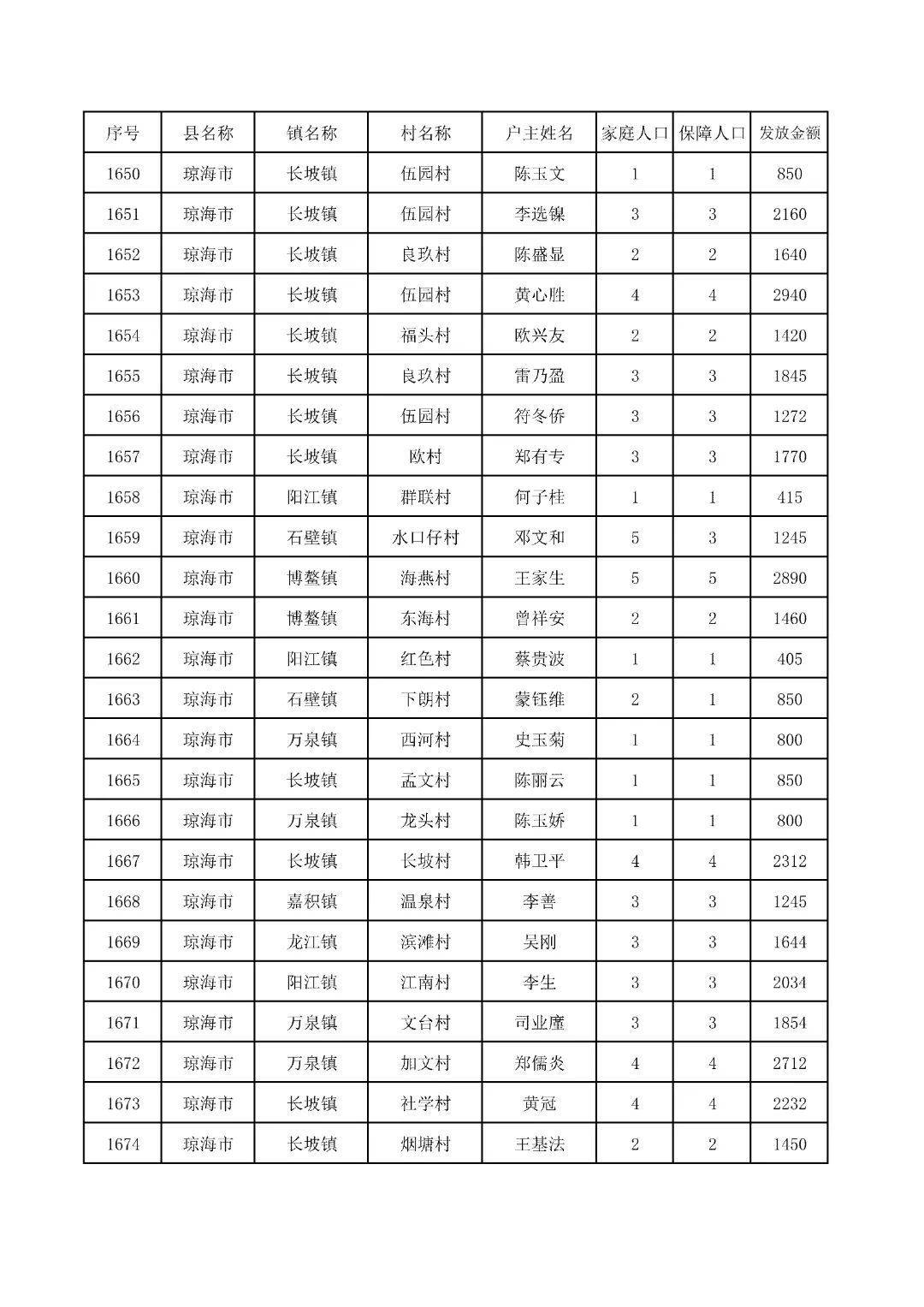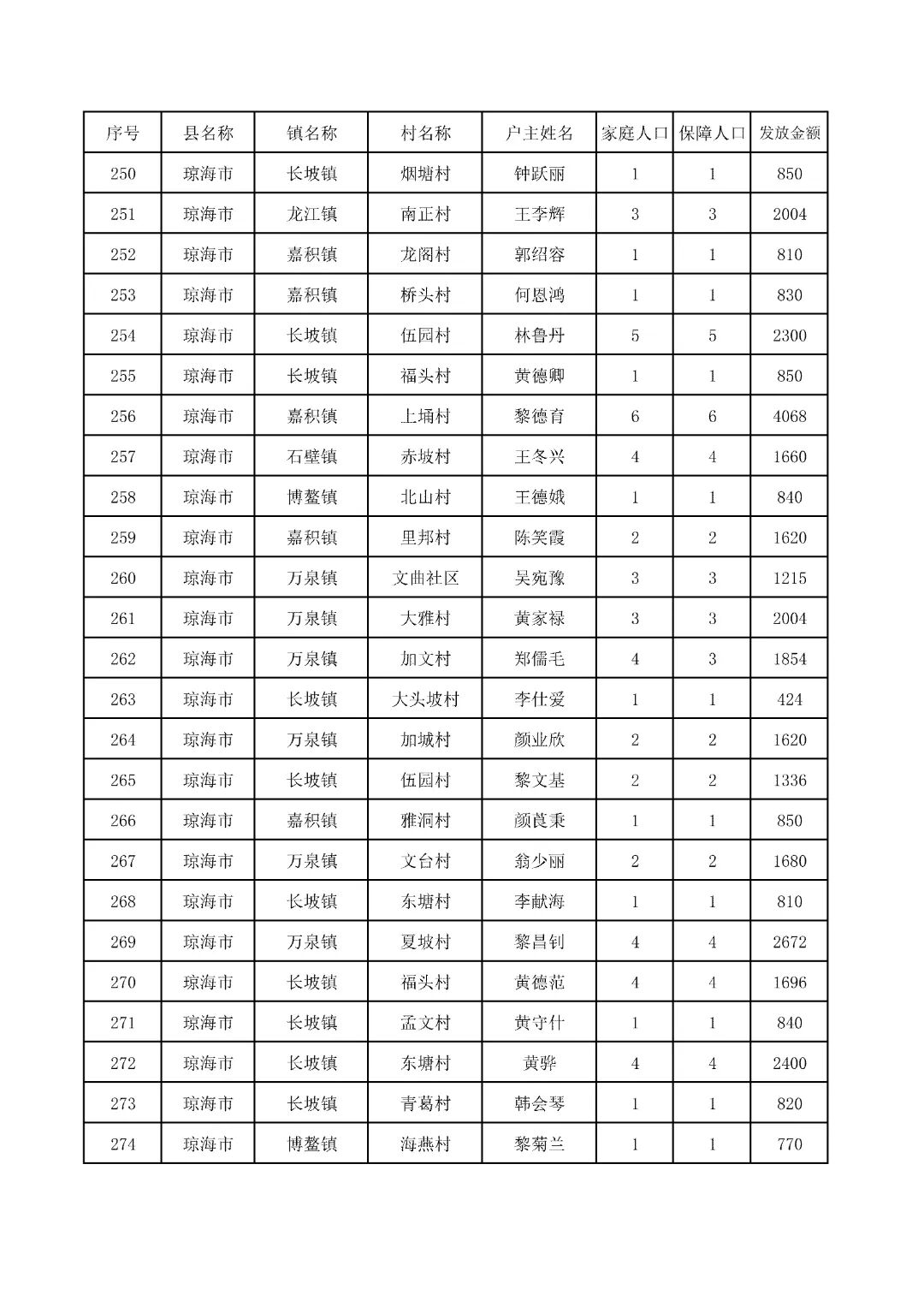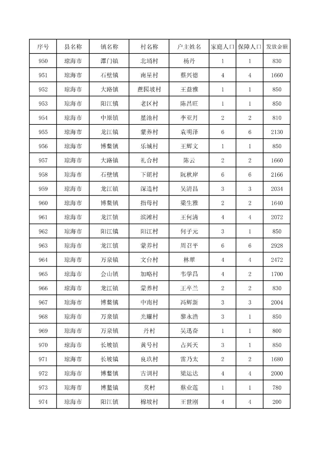 琼海市 2026年1月份城乡低保、特困人员长期公示 ...