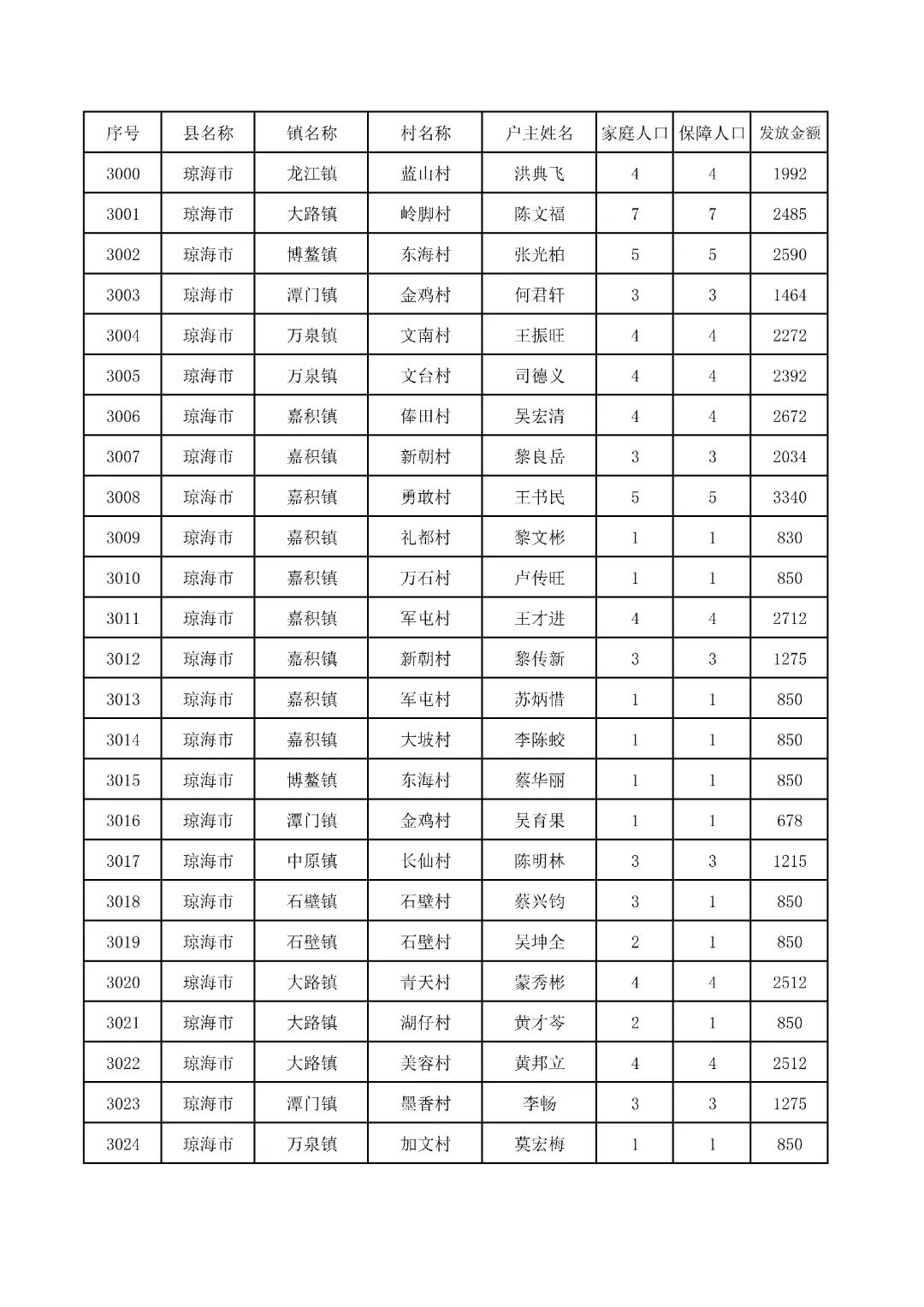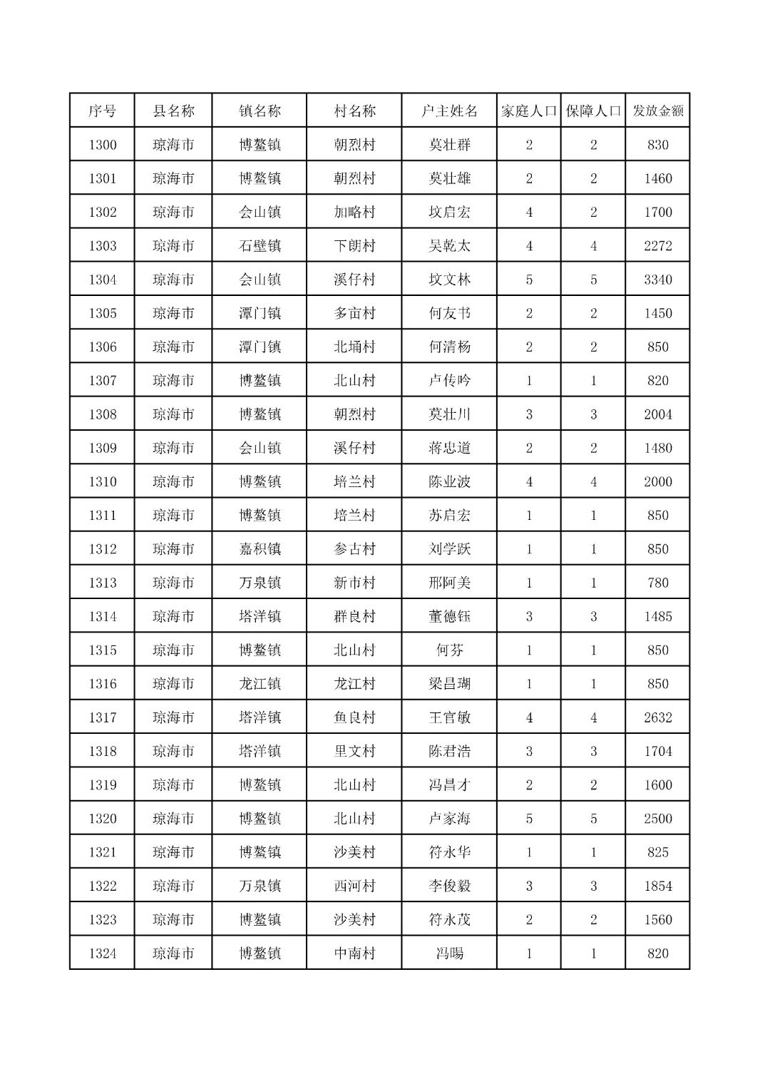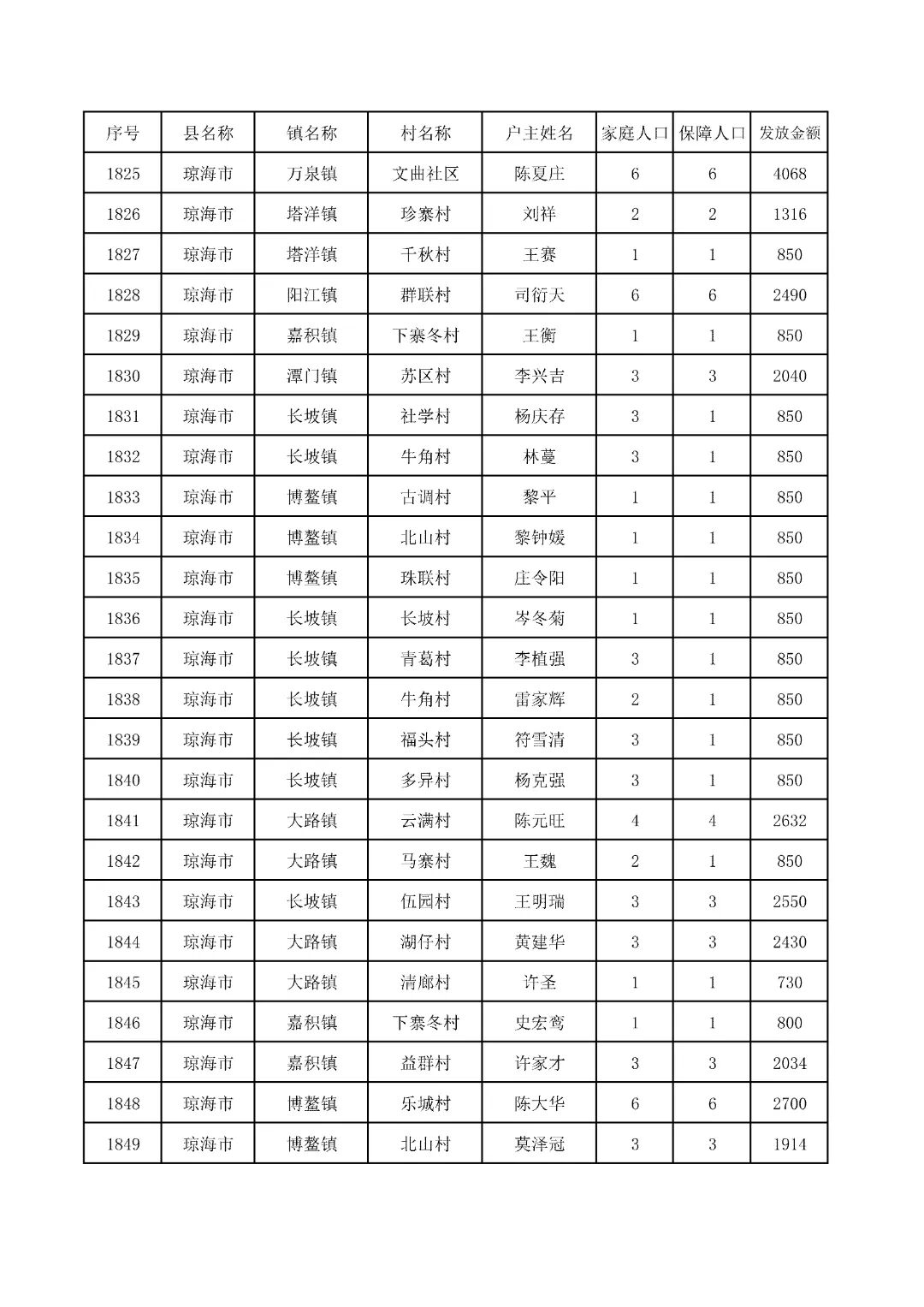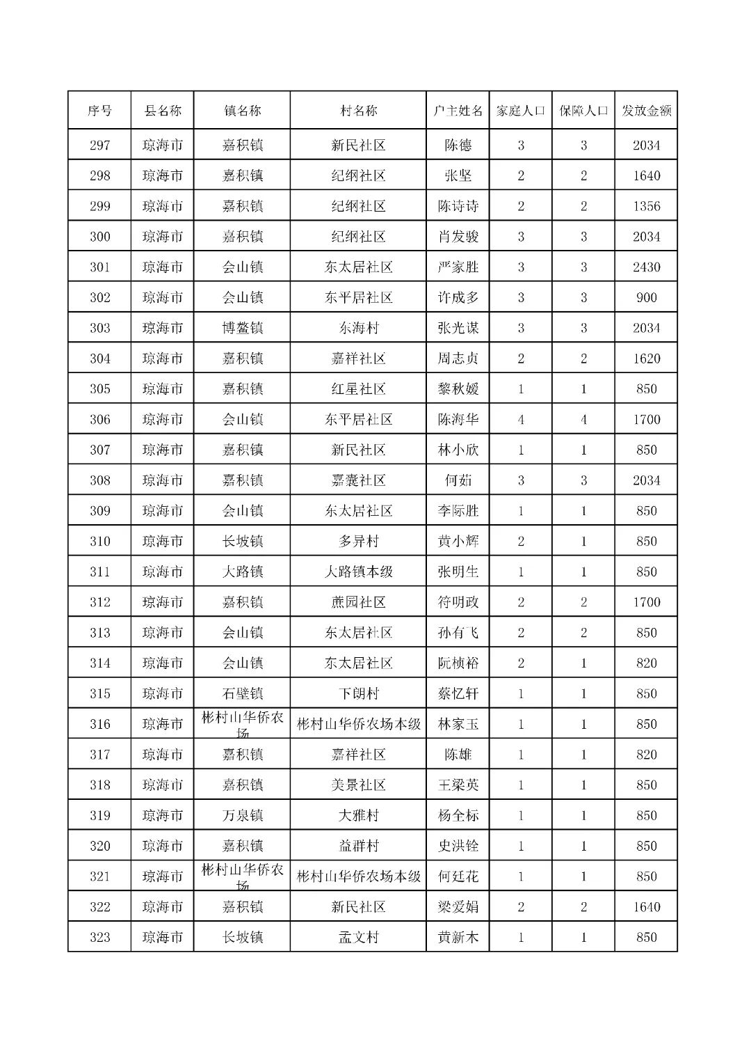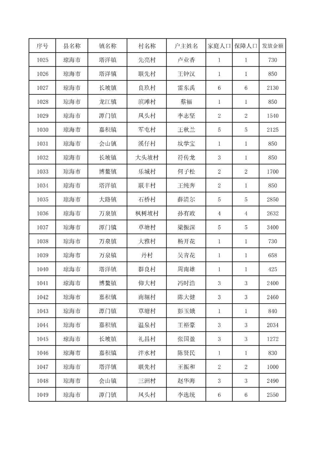 琼海市 2026年1月份城乡低保、特困人员长期公示 ...