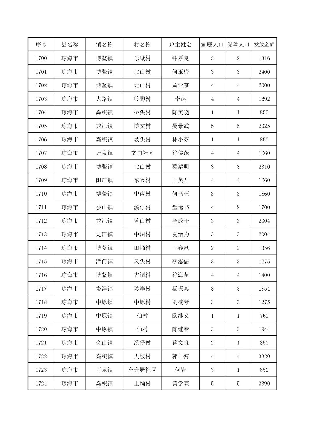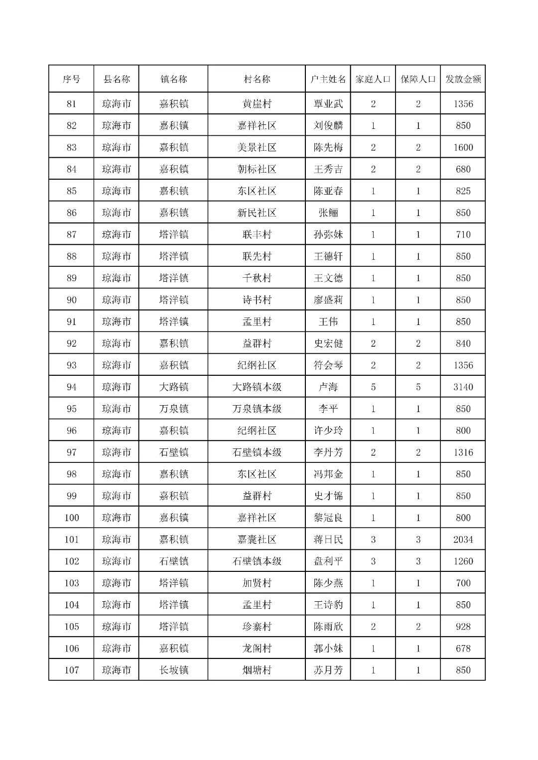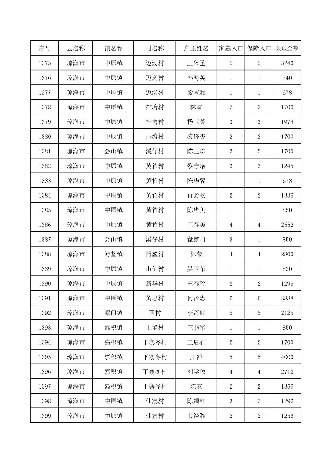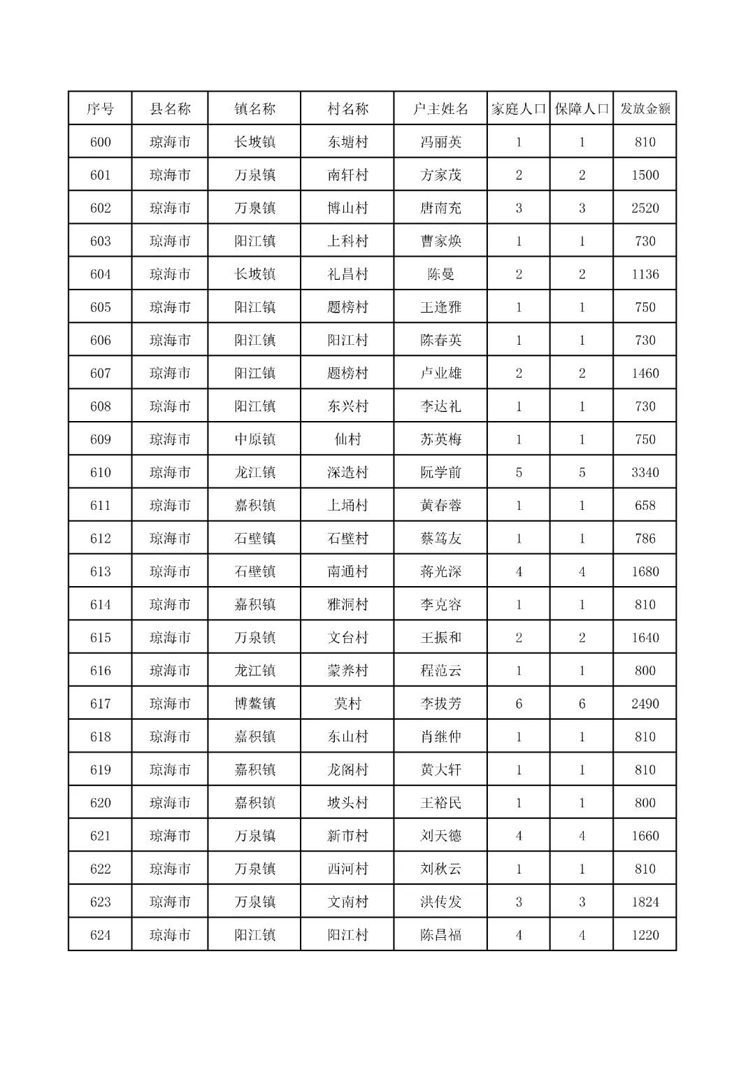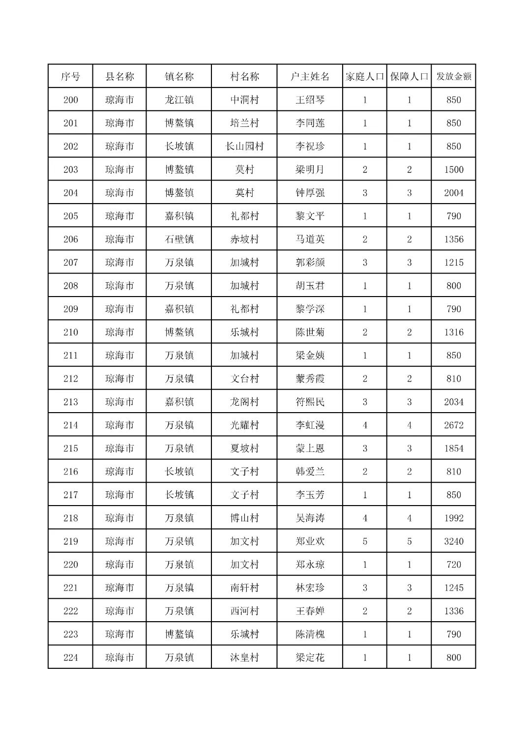 琼海市 2026年1月份城乡低保、特困人员长期公示 ...