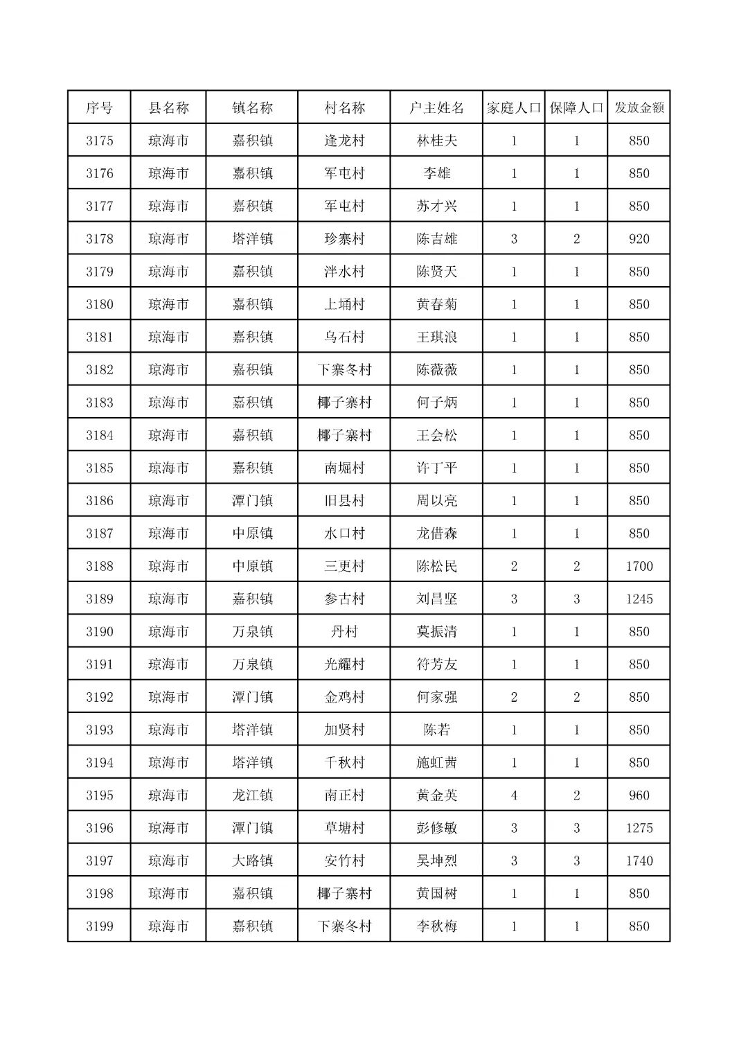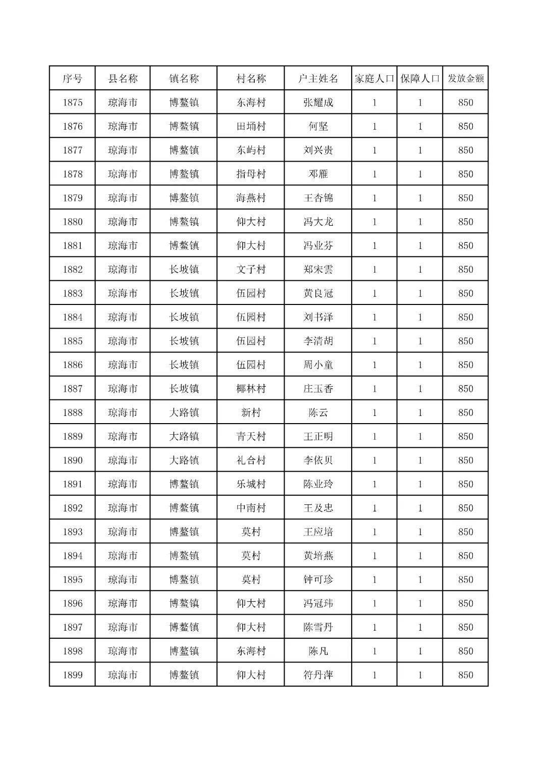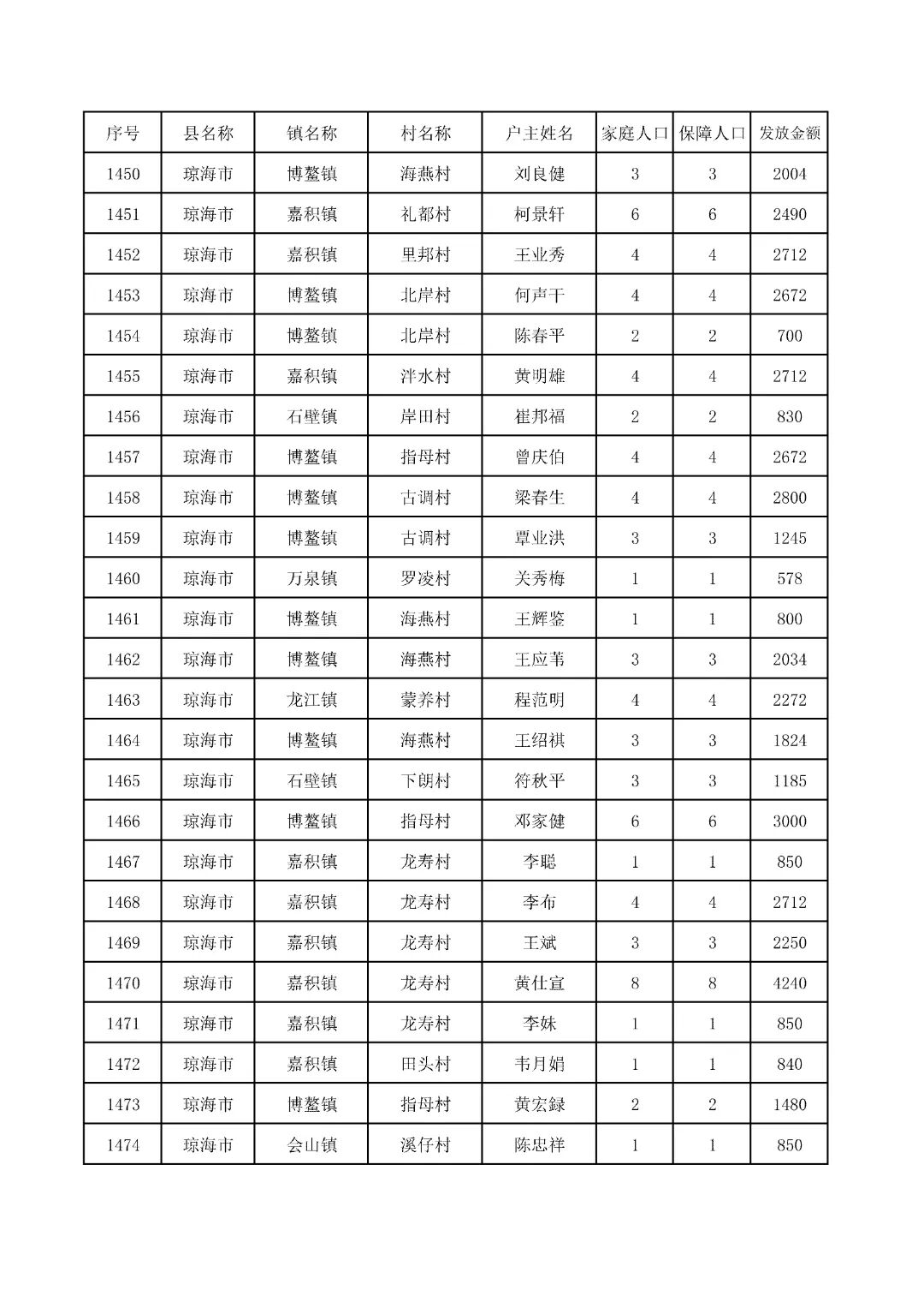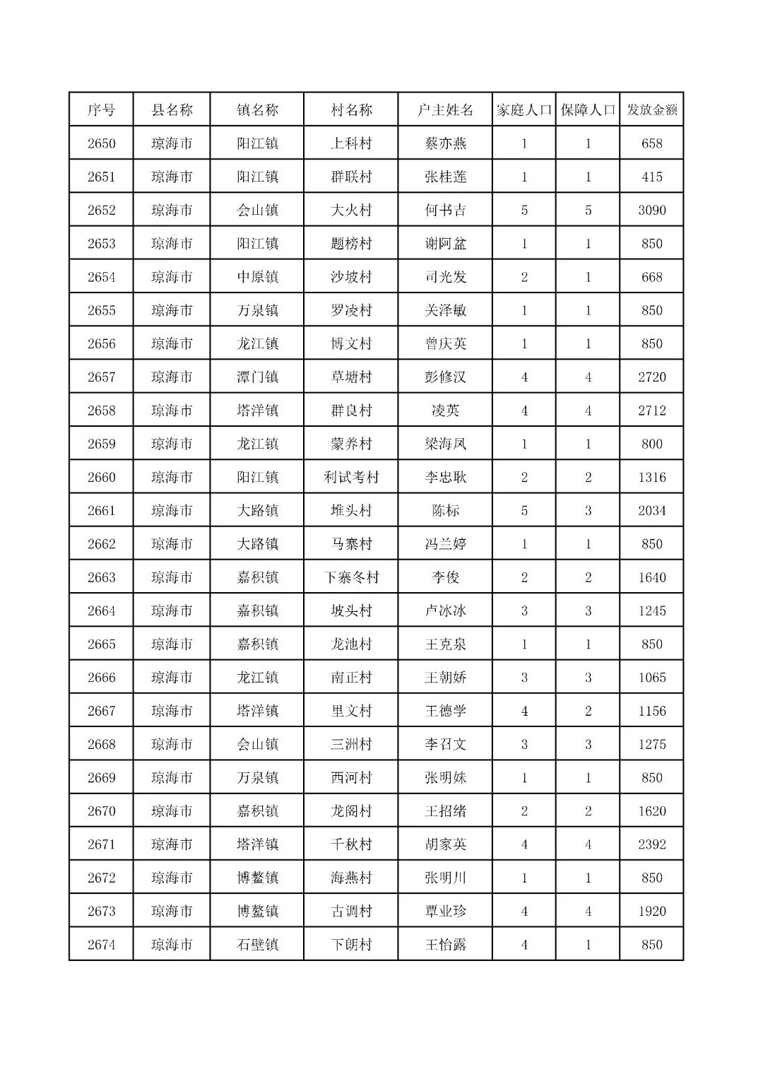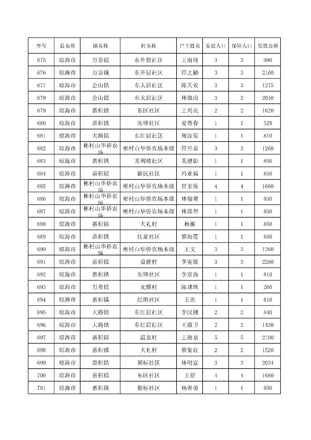 琼海市 2026年1月份城乡低保、特困人员长期公示 ...