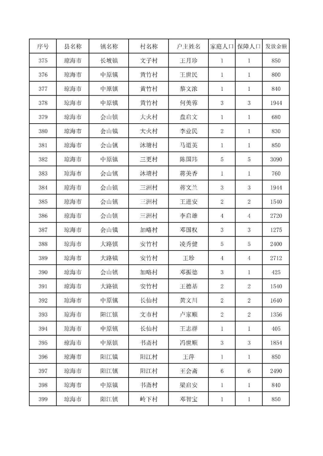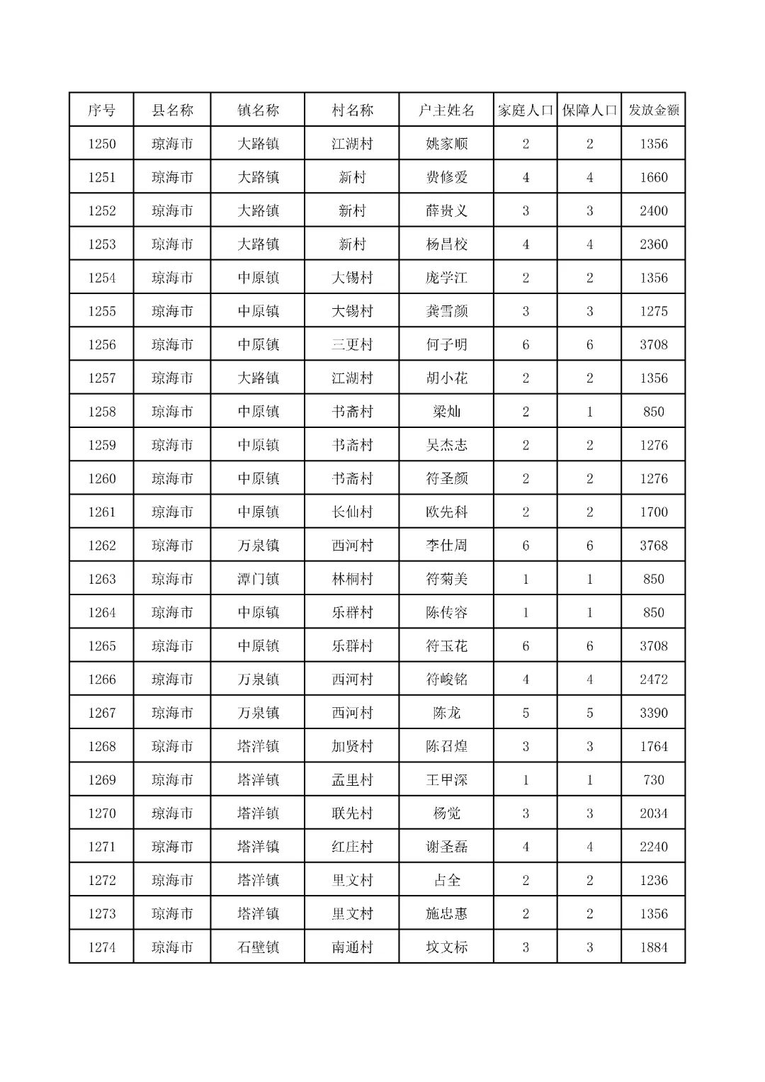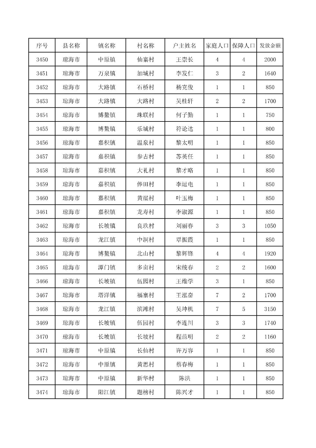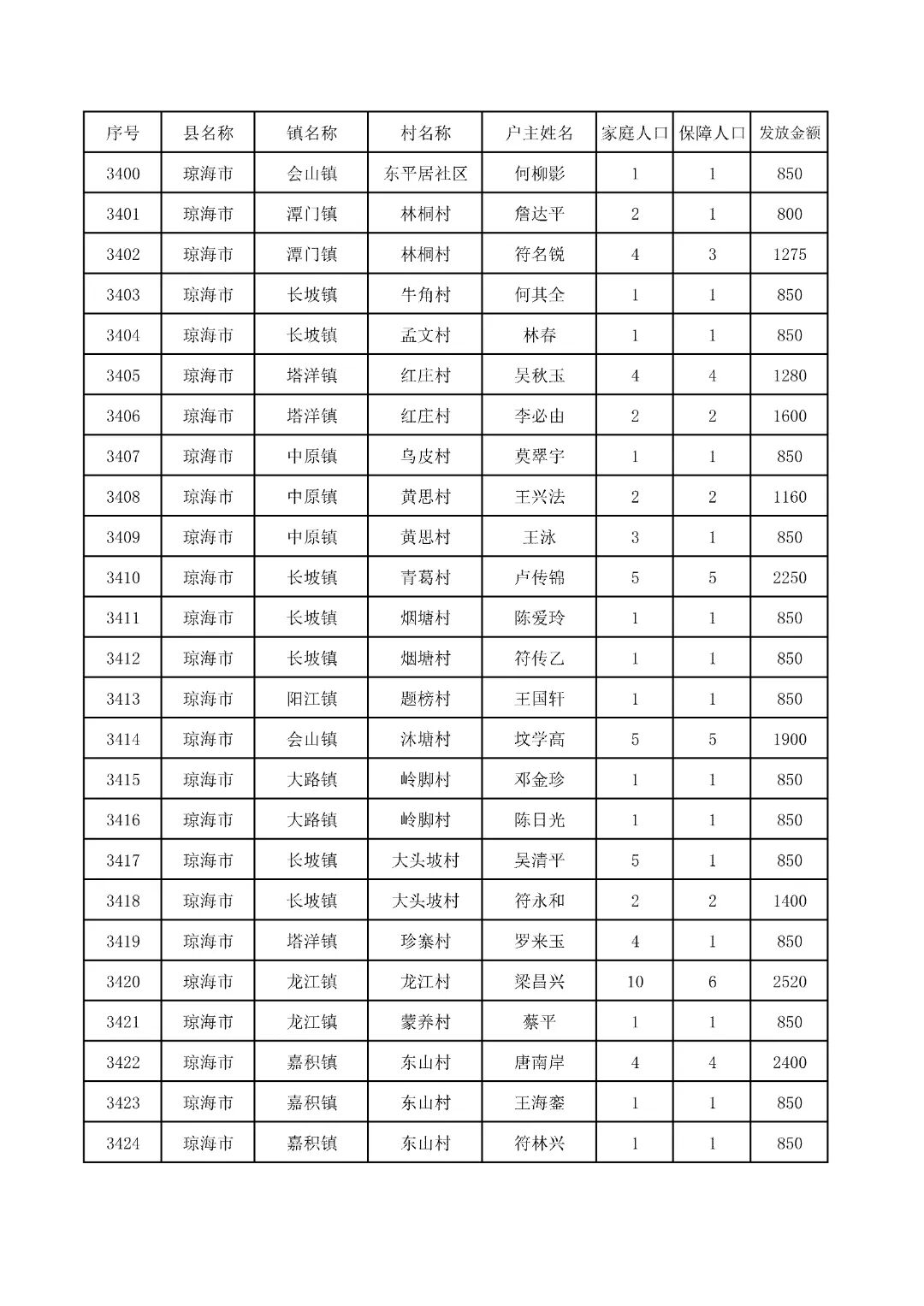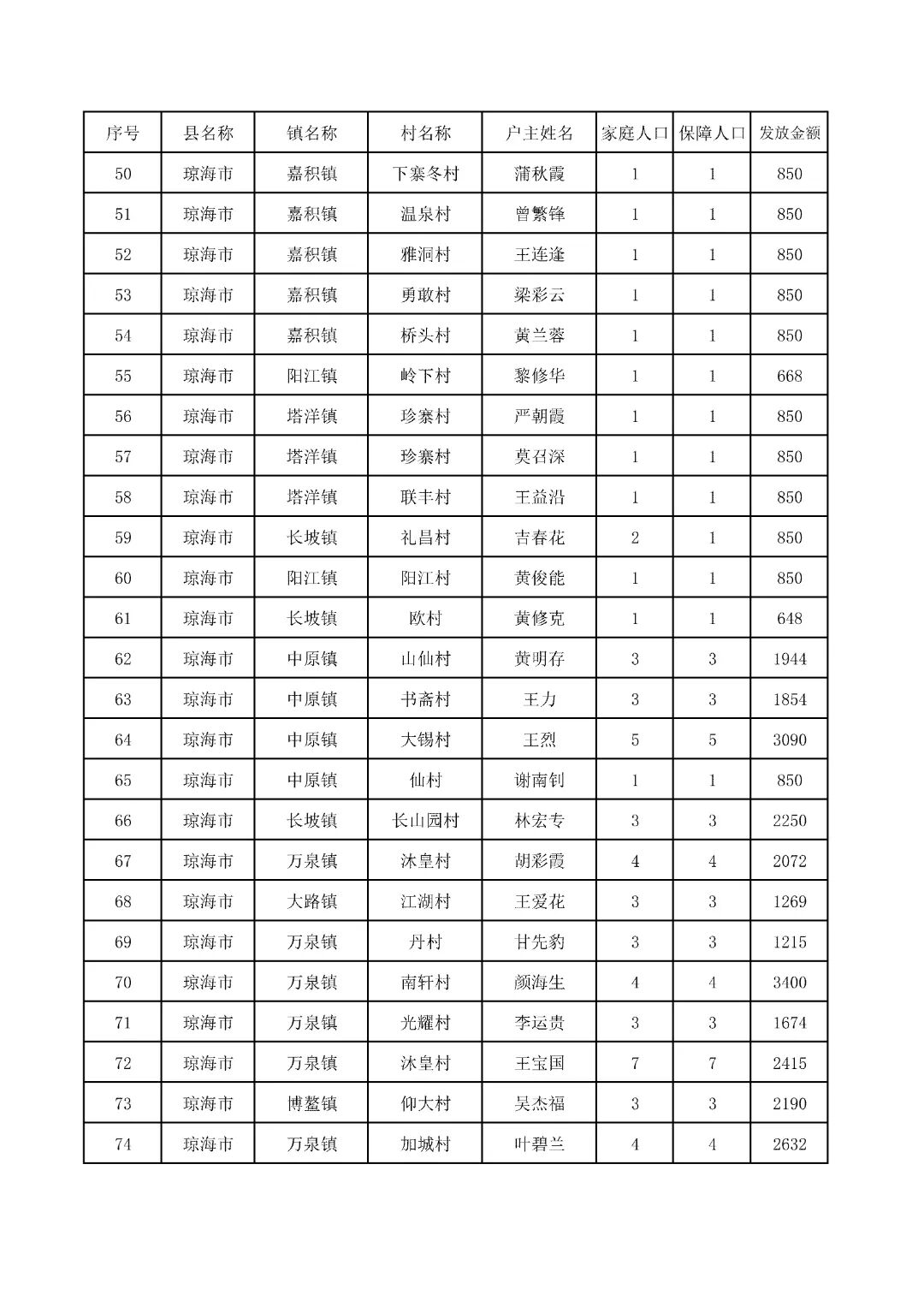 琼海市 2026年1月份城乡低保、特困人员长期公示 ...