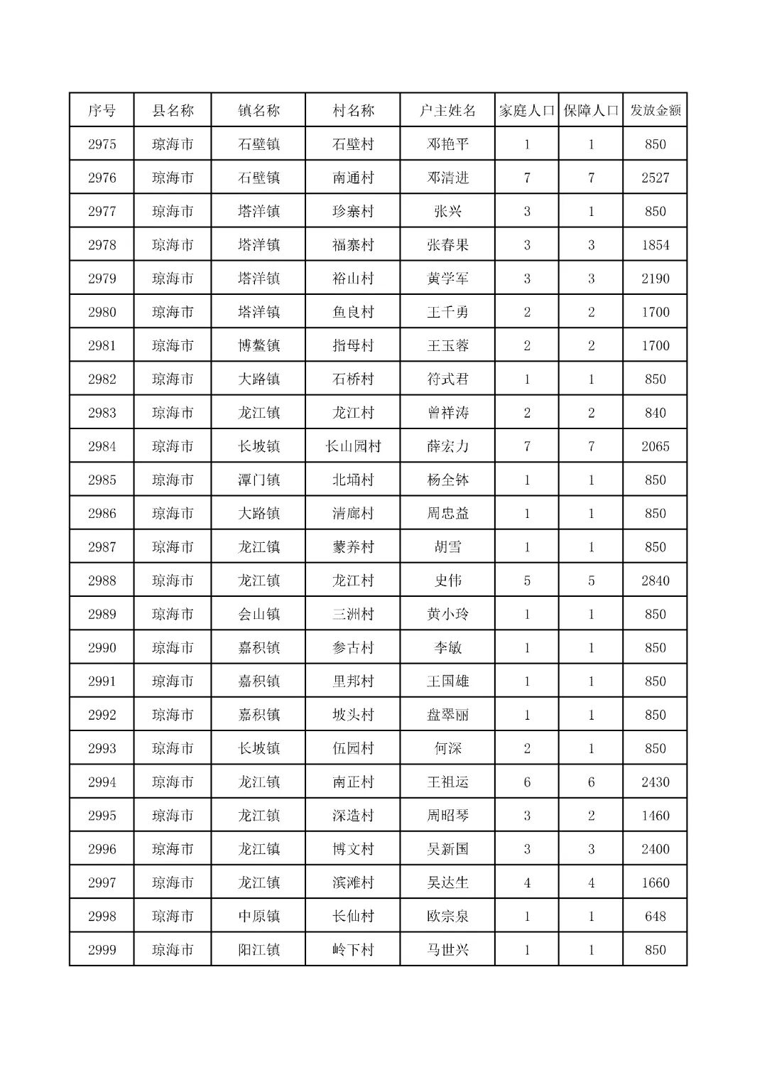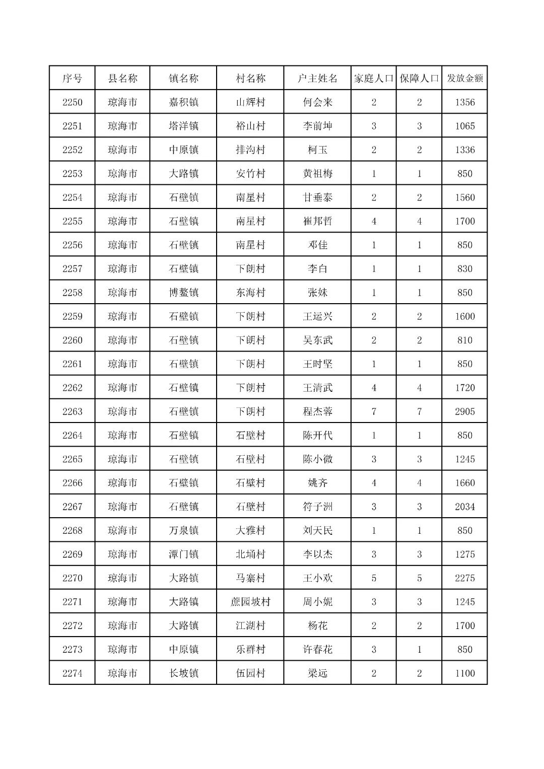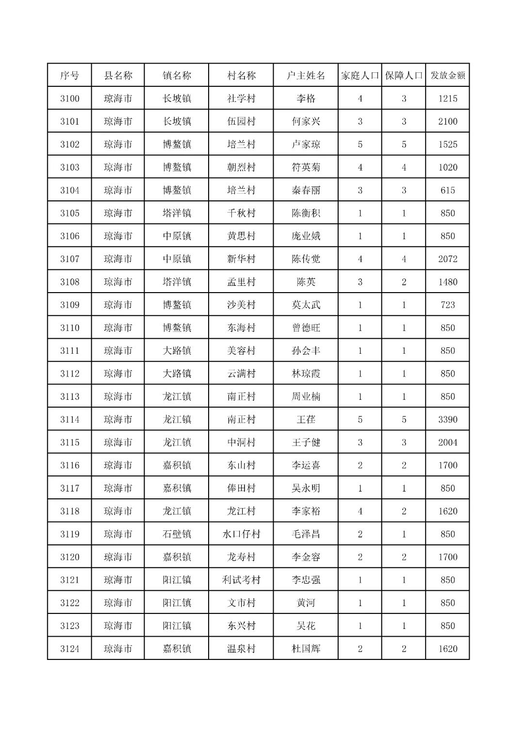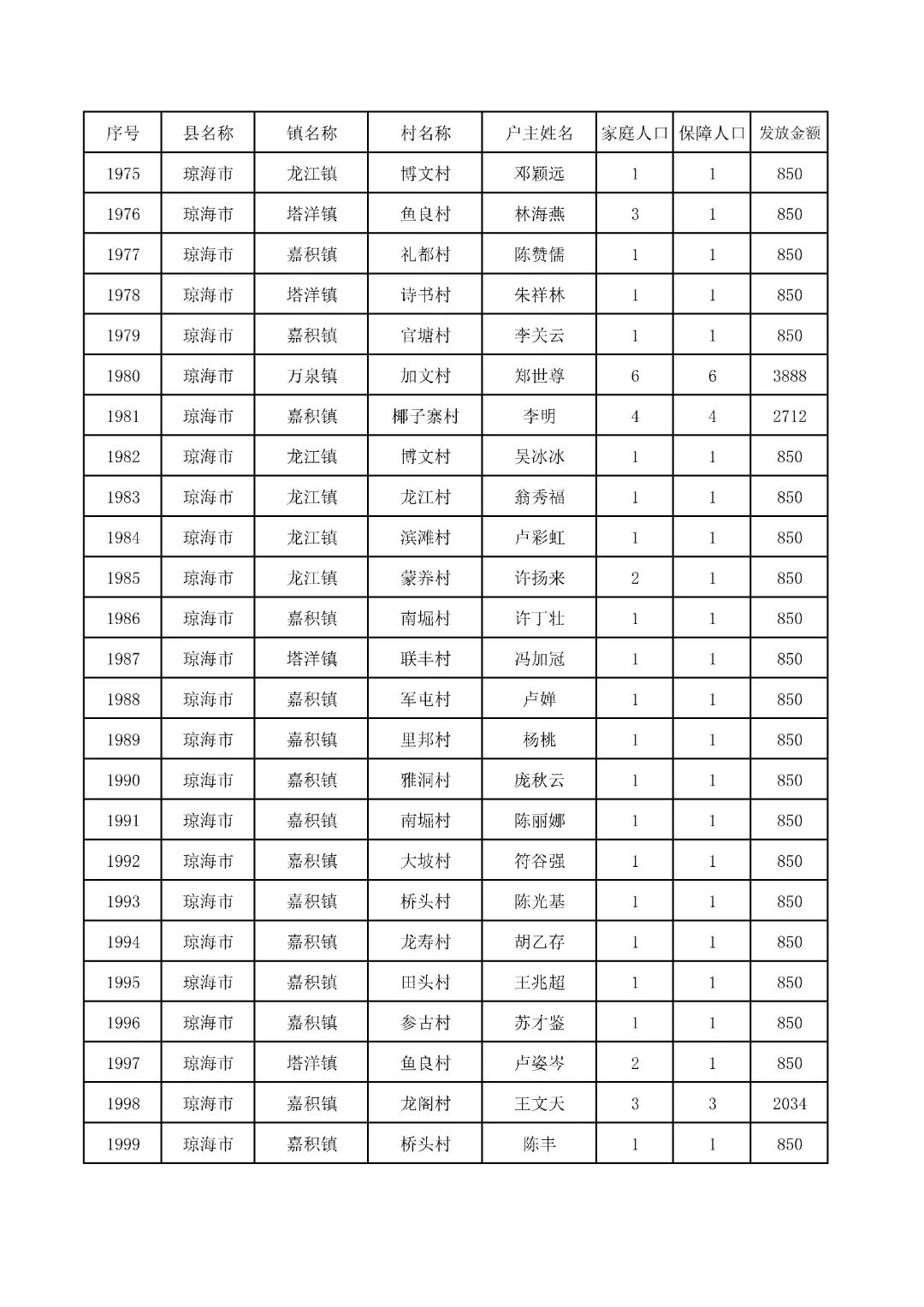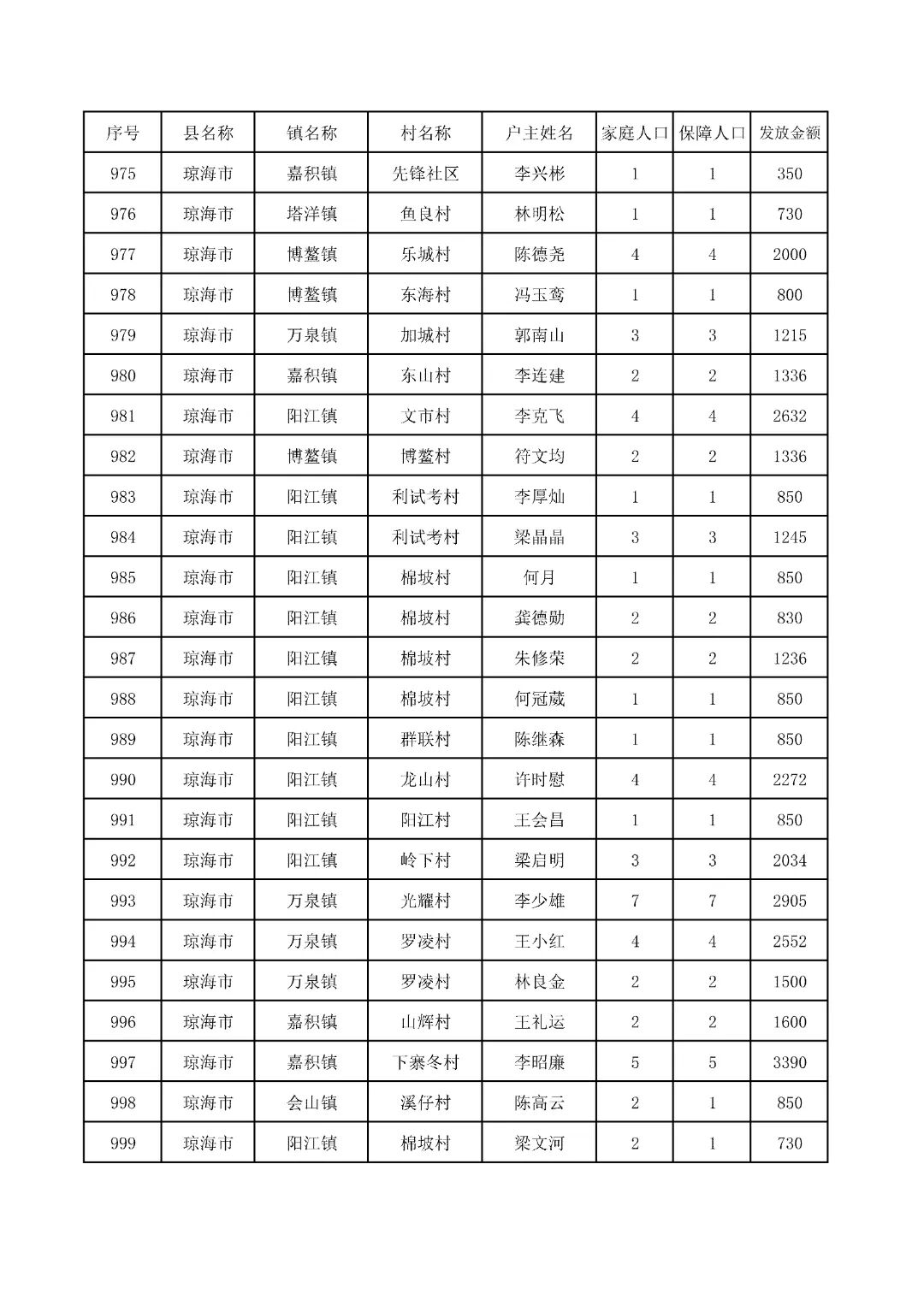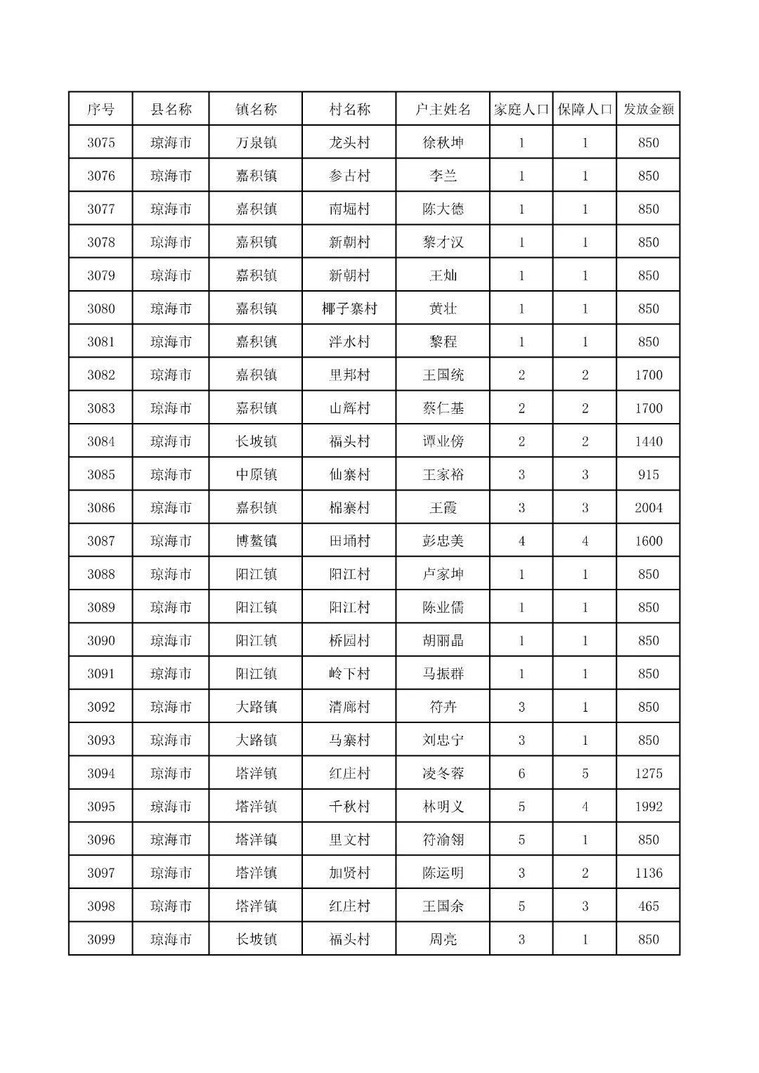 琼海市 2026年1月份城乡低保、特困人员长期公示 ...