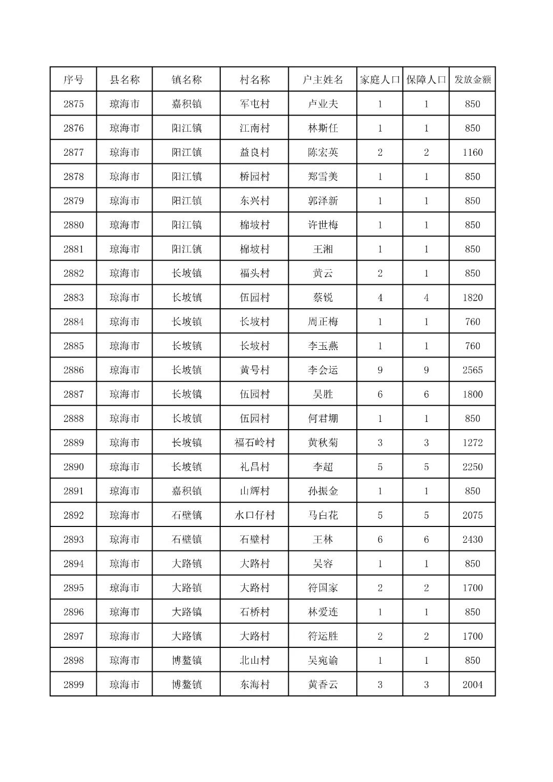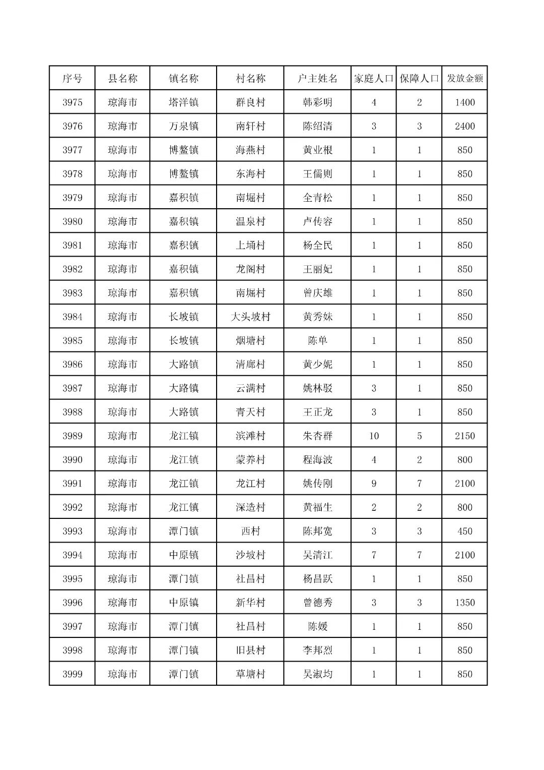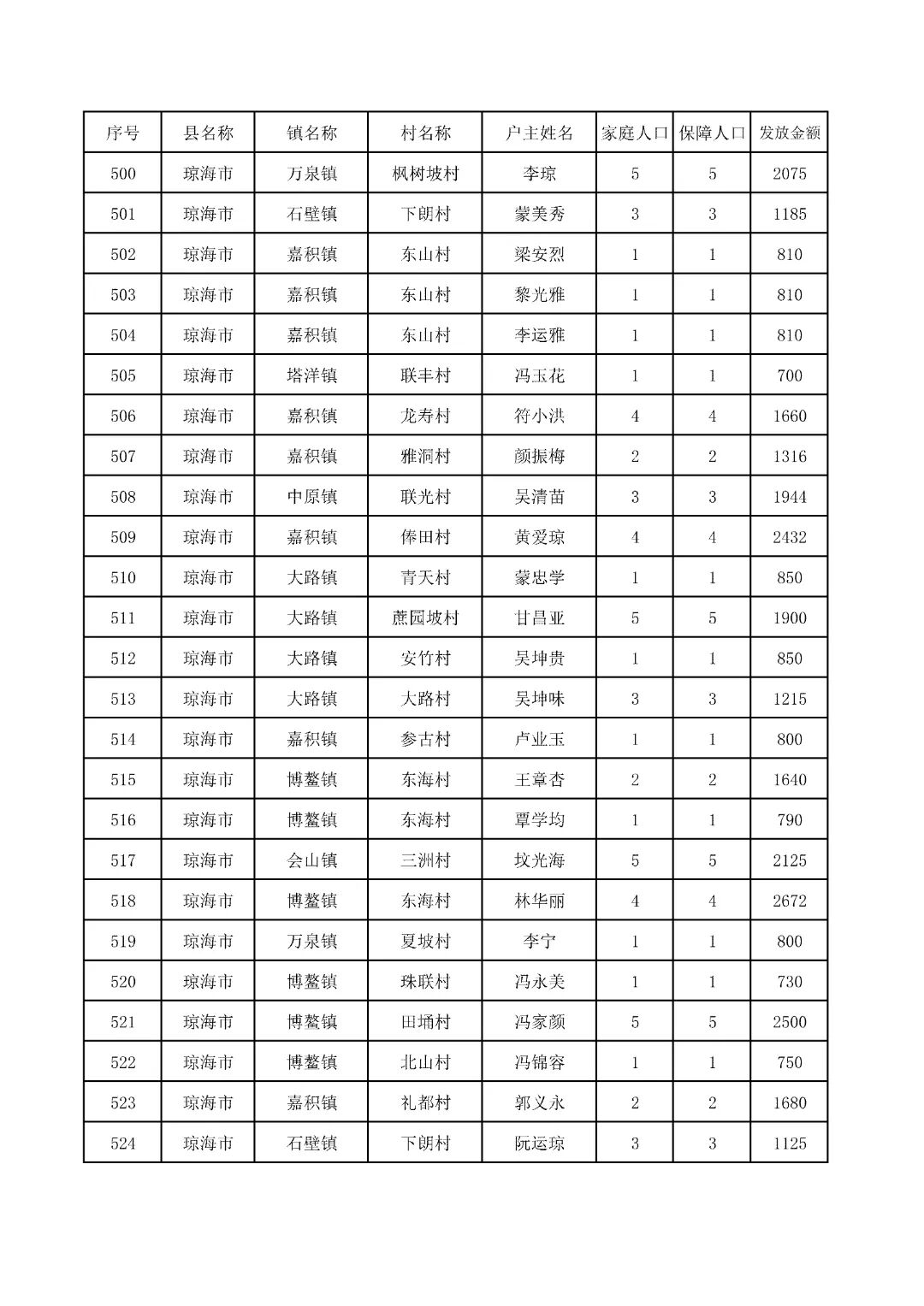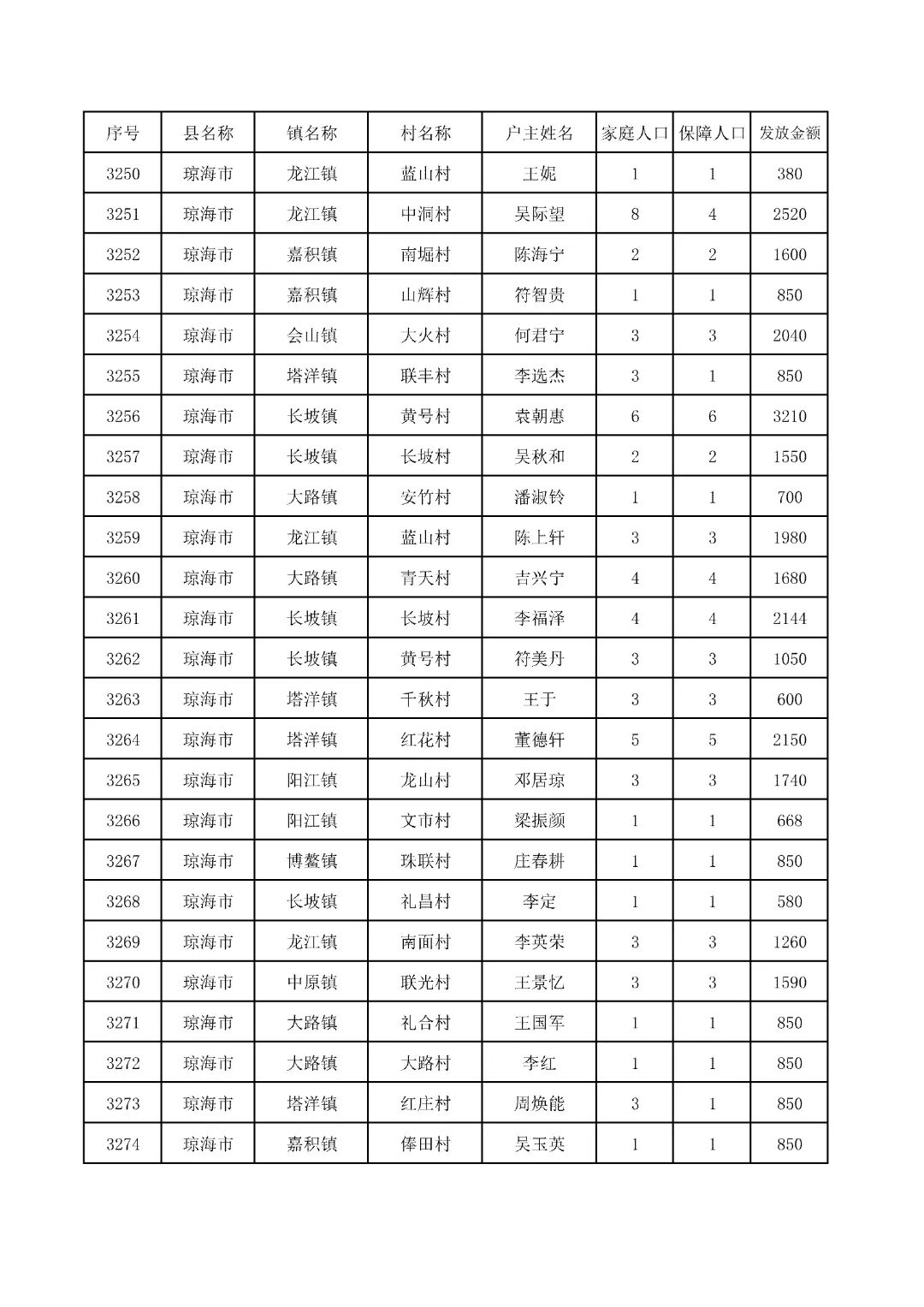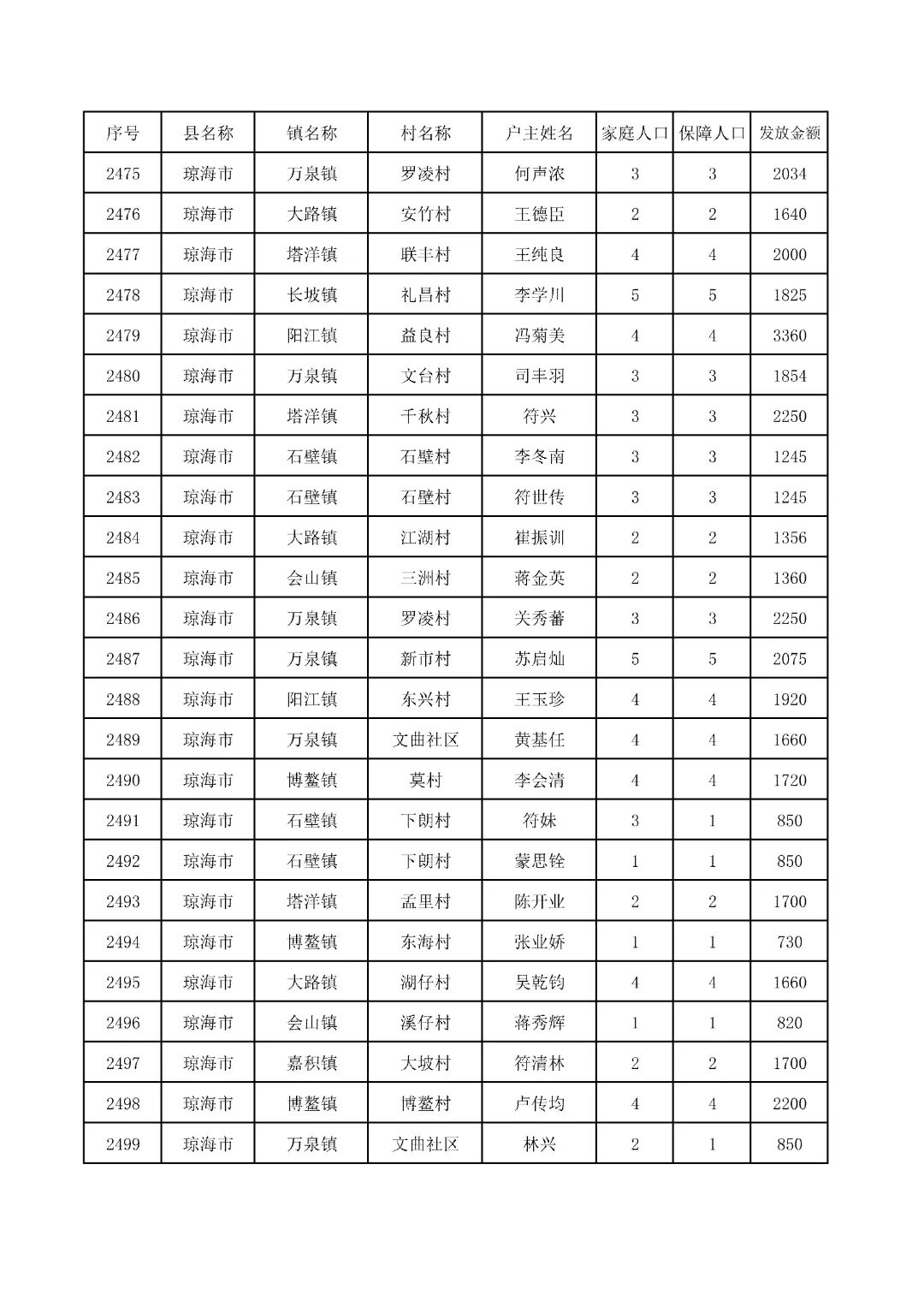 琼海市 2026年1月份城乡低保、特困人员长期公示 ...