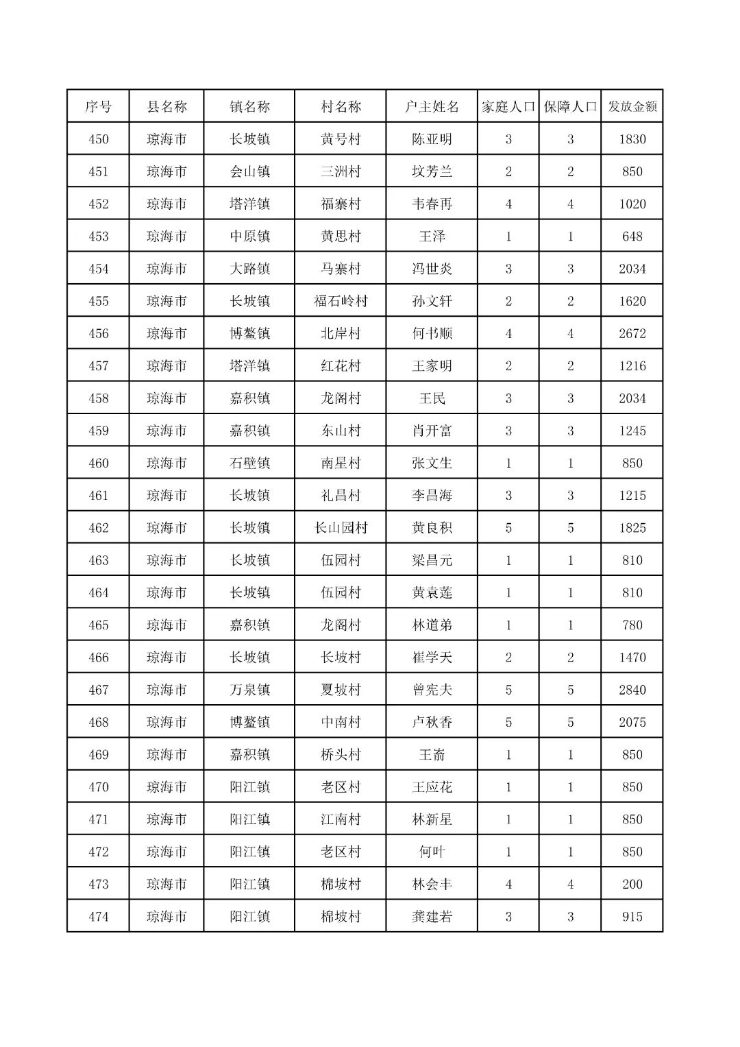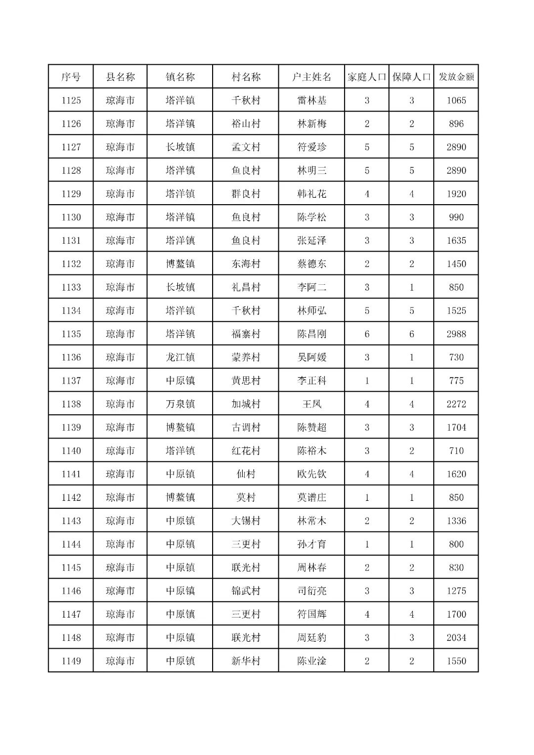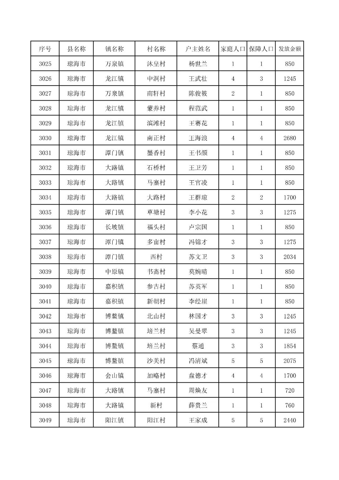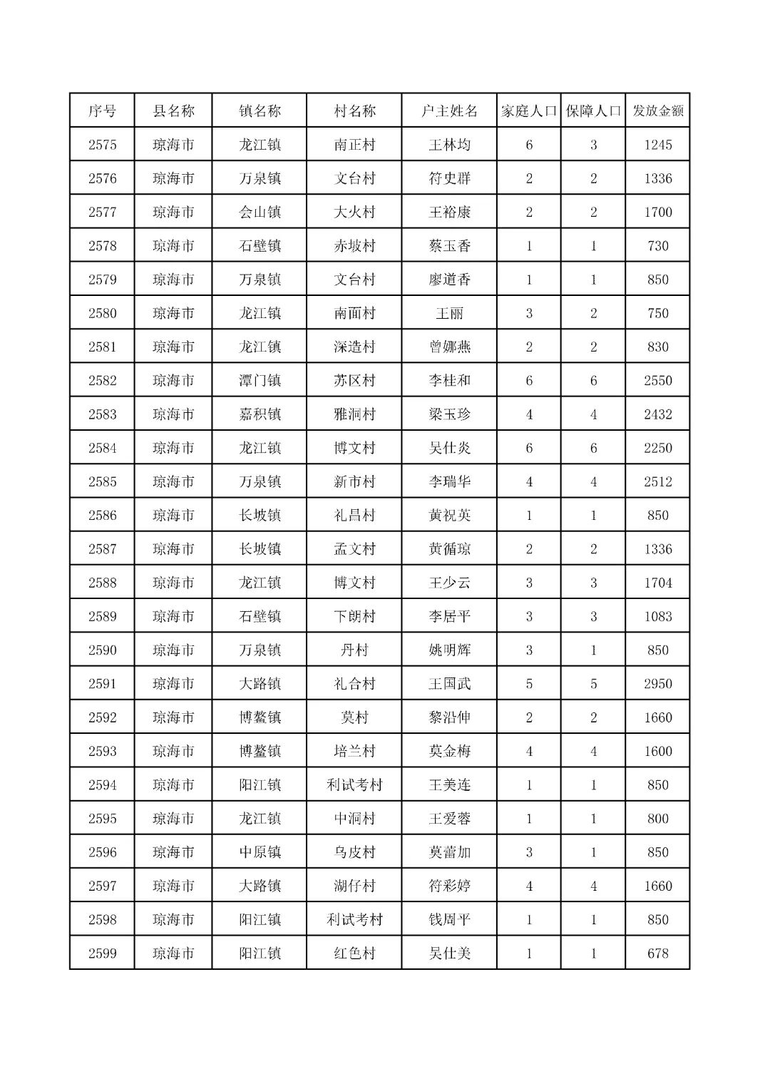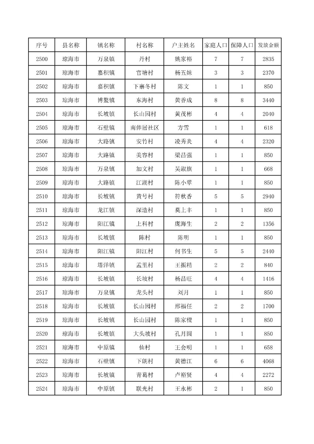 琼海市 2026年1月份城乡低保、特困人员长期公示 ...