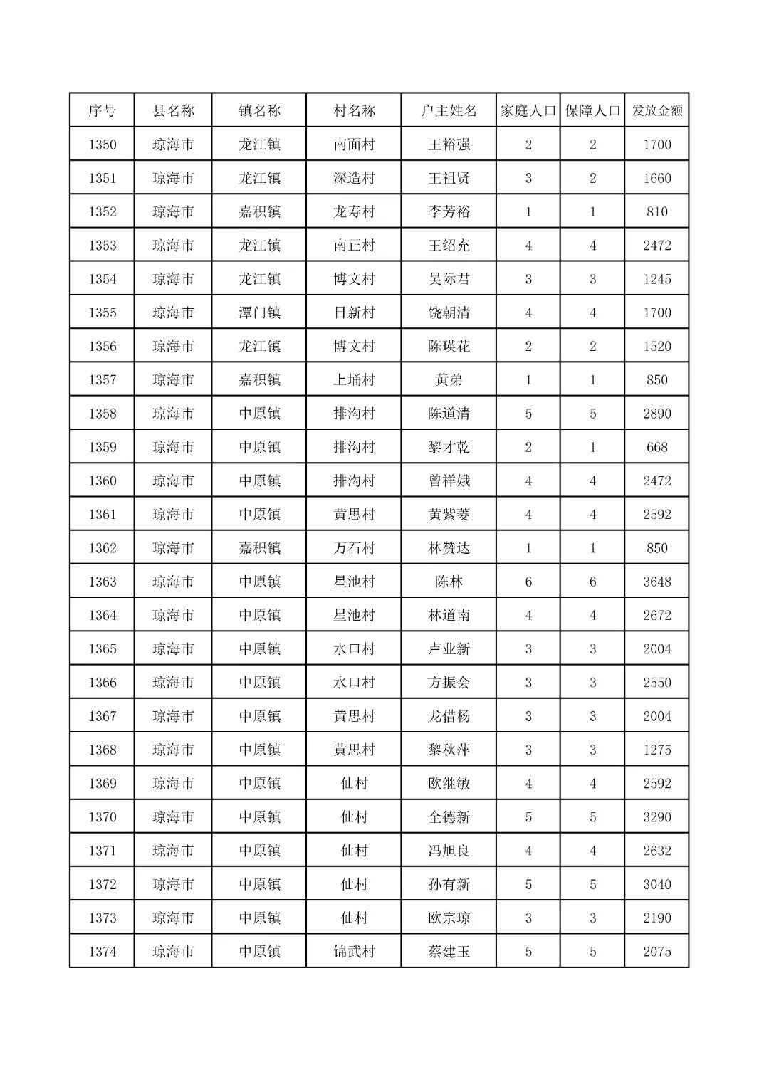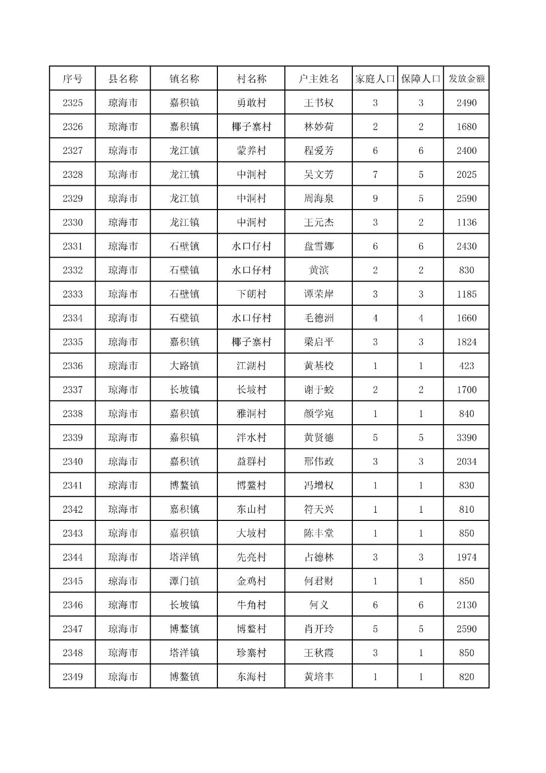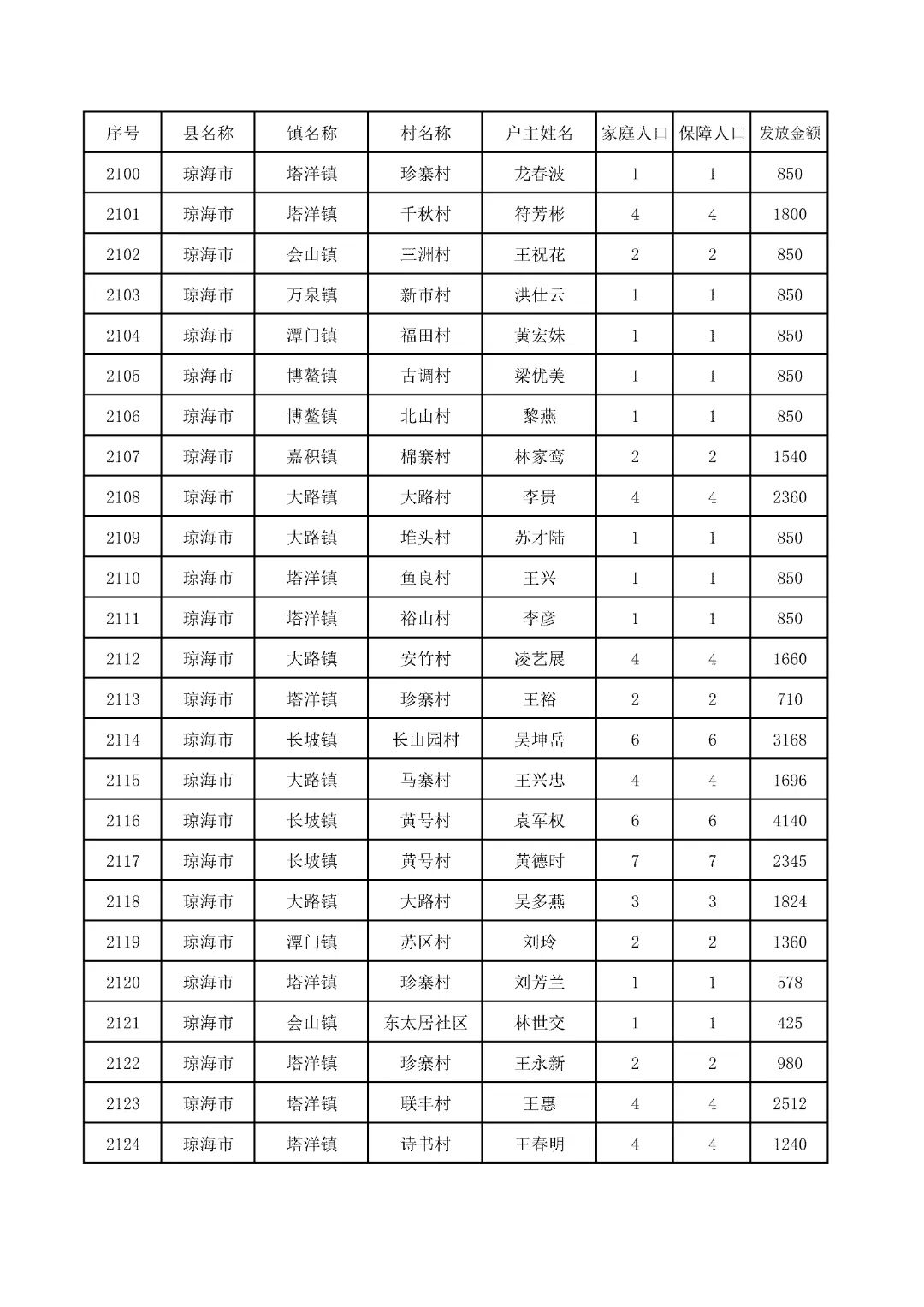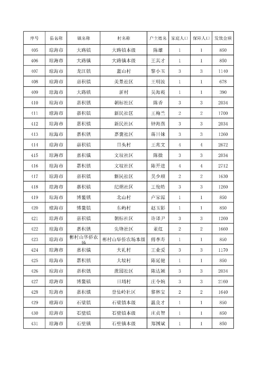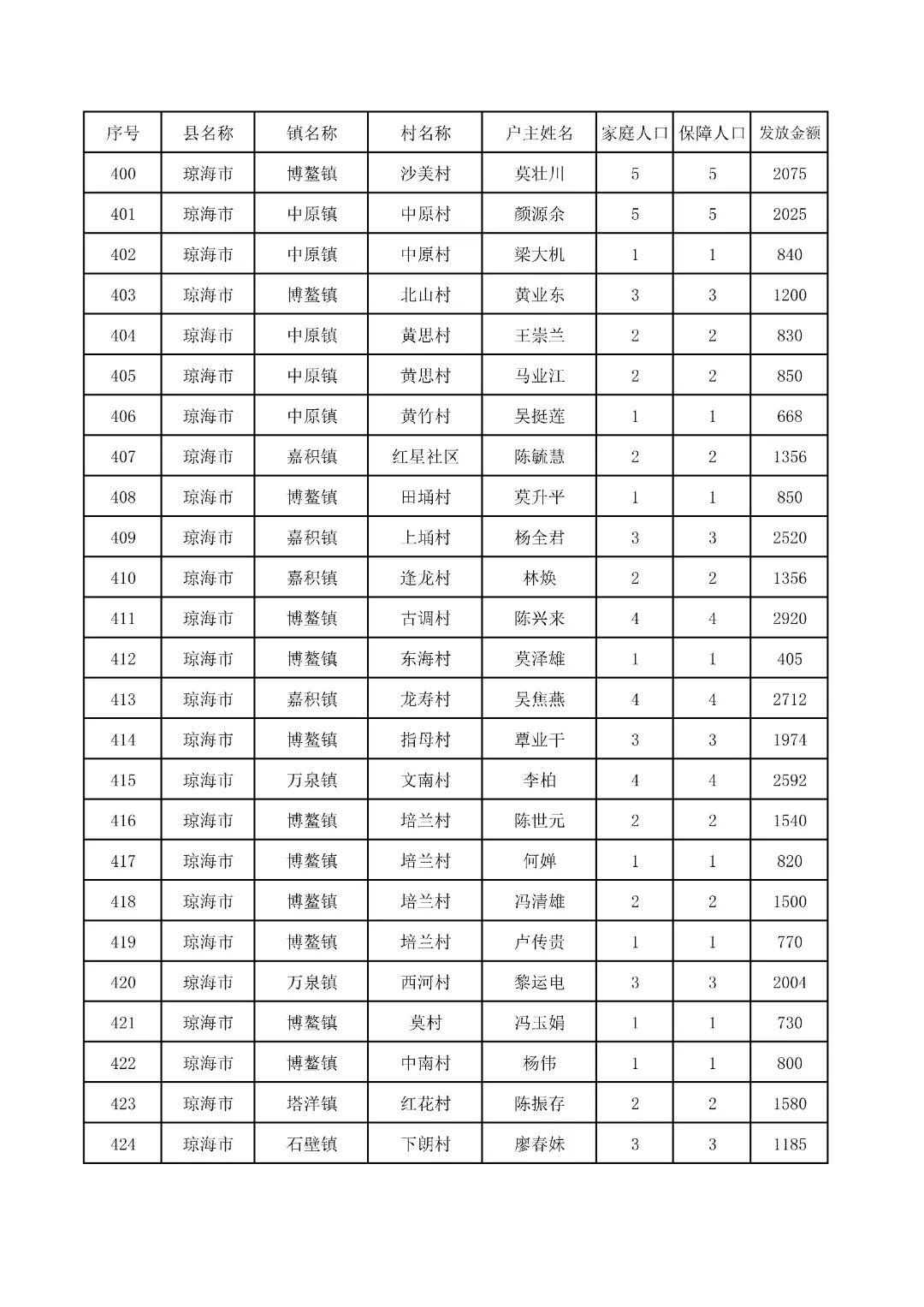 琼海市 2026年1月份城乡低保、特困人员长期公示 ...