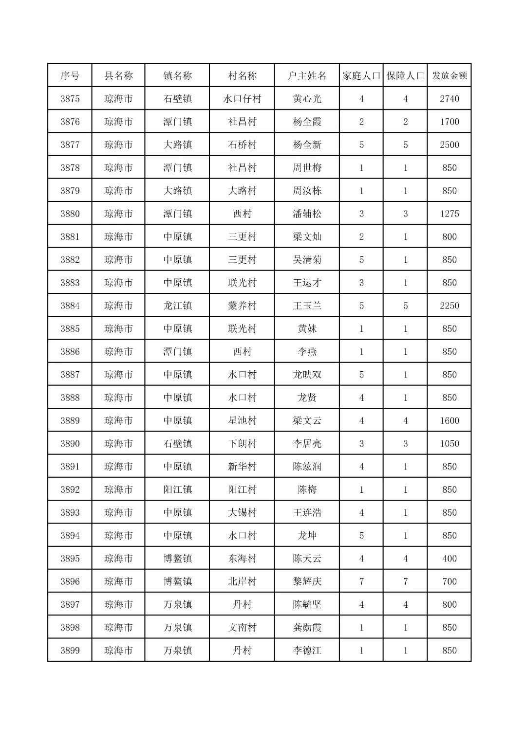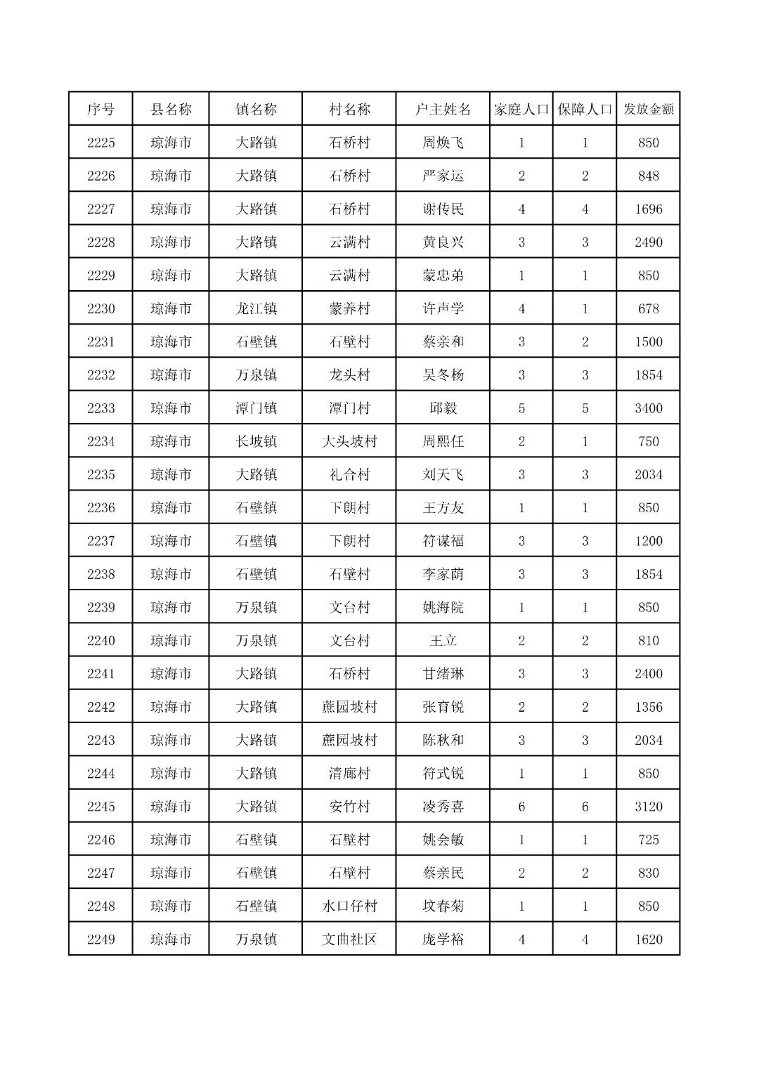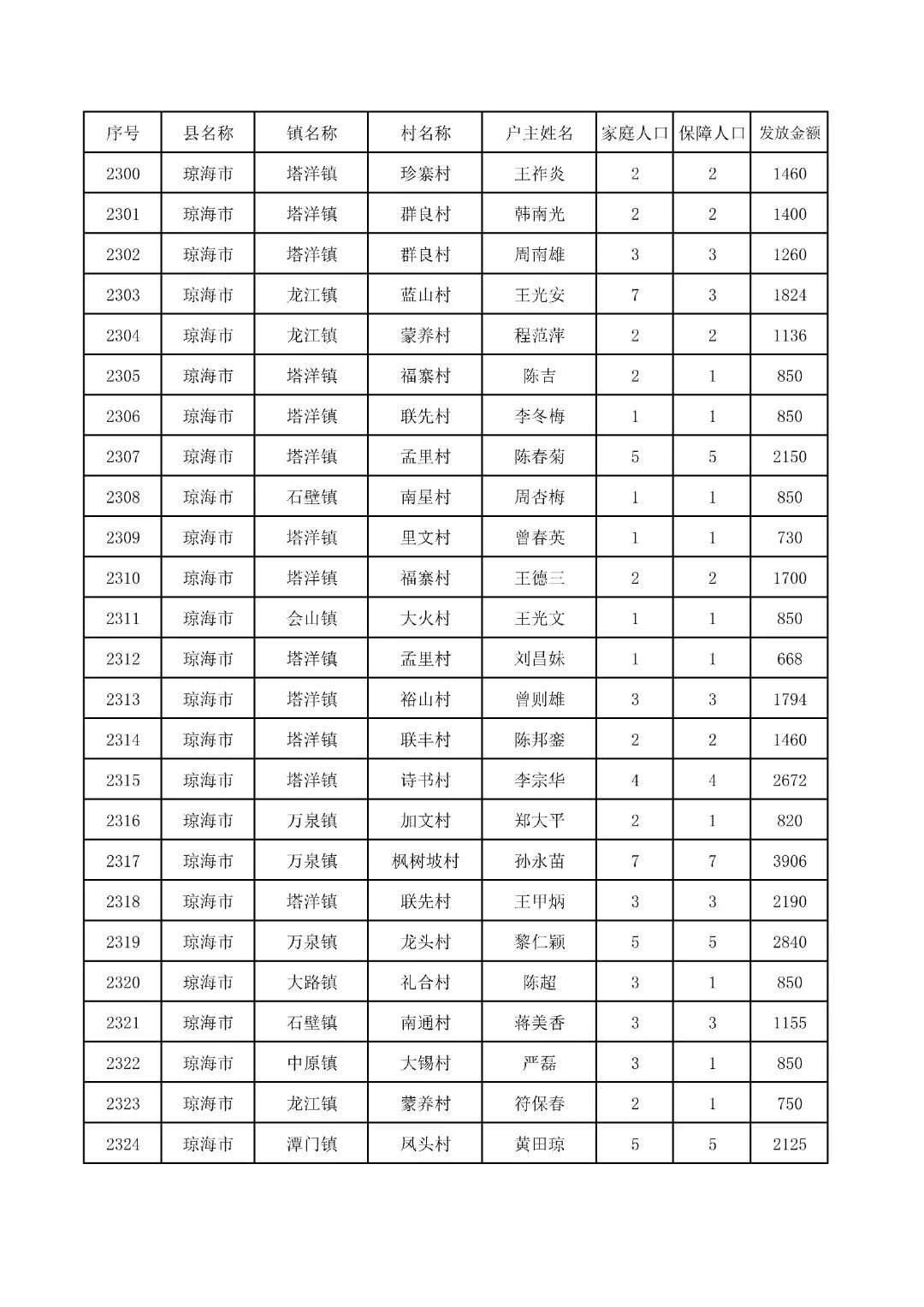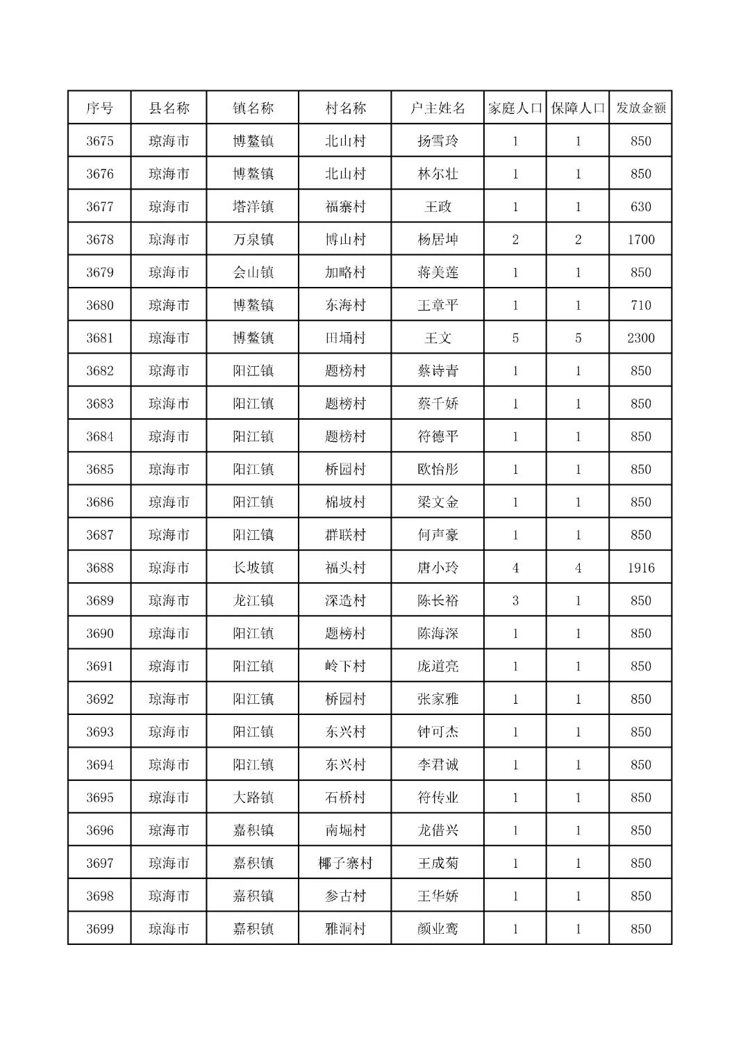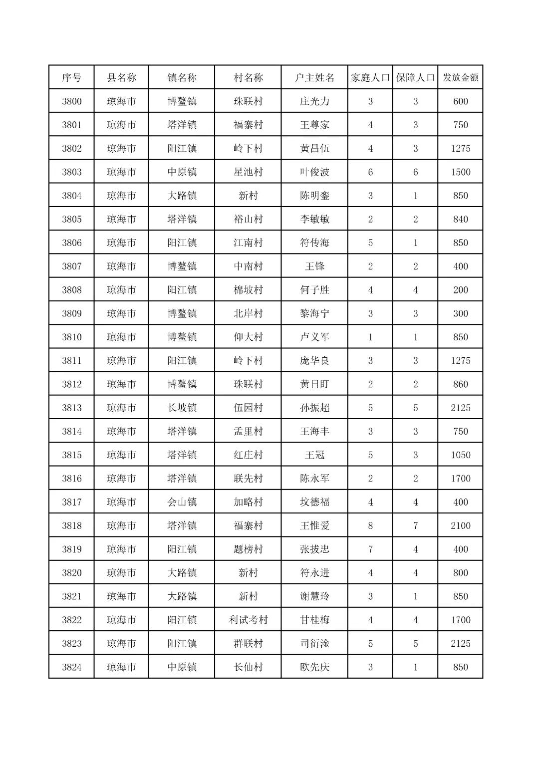琼海市 2026年1月份城乡低保、特困人员长期公示 ...