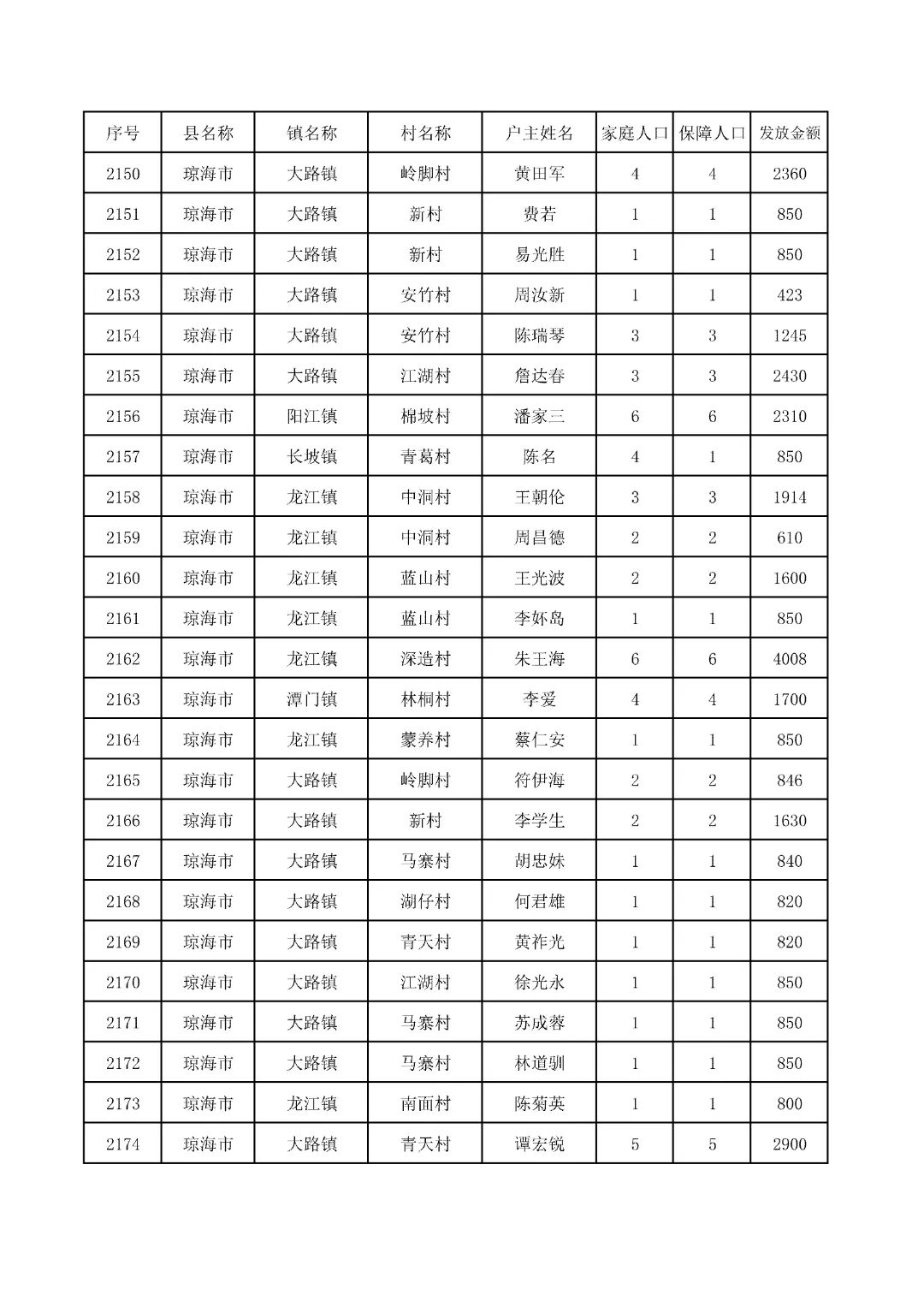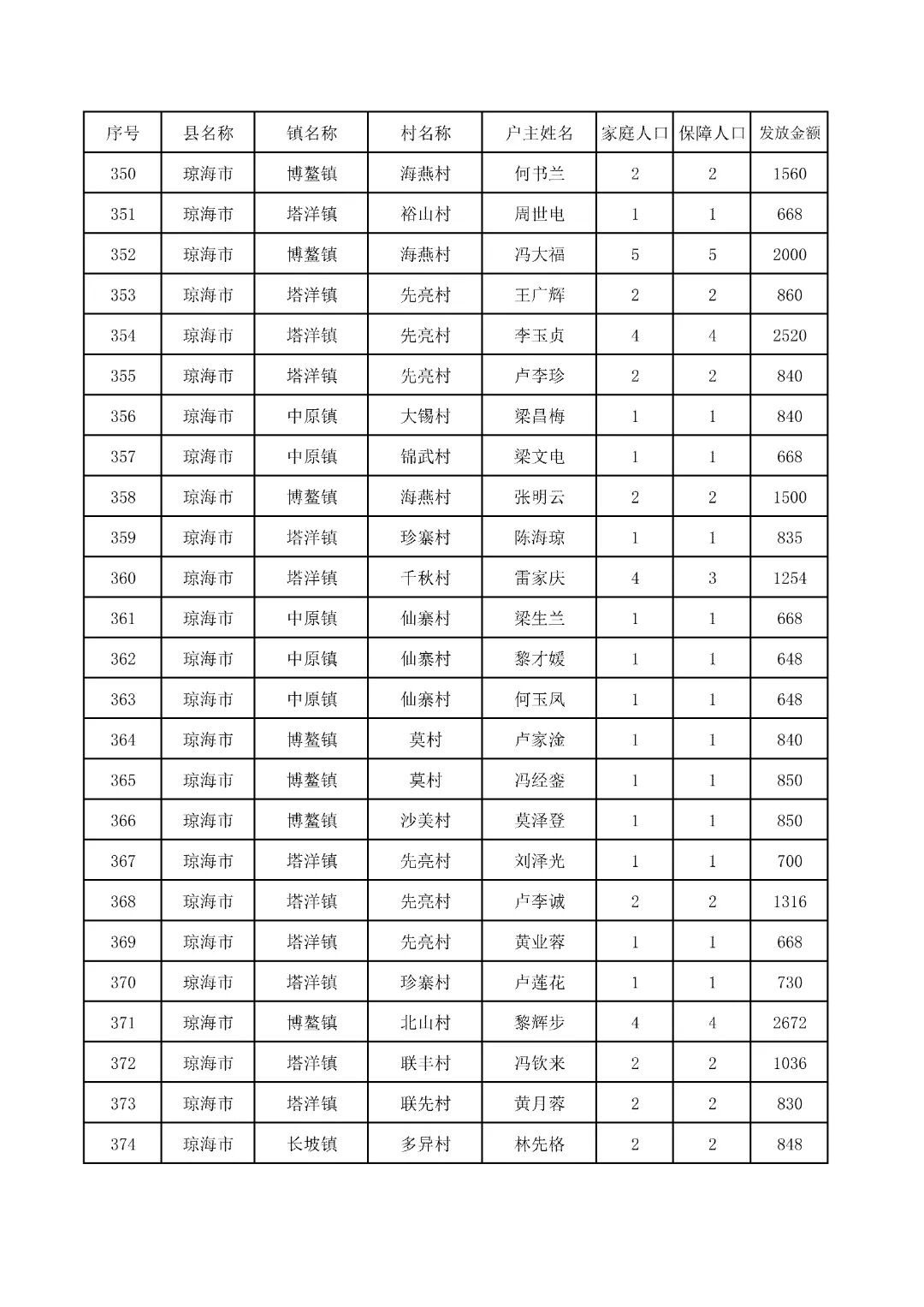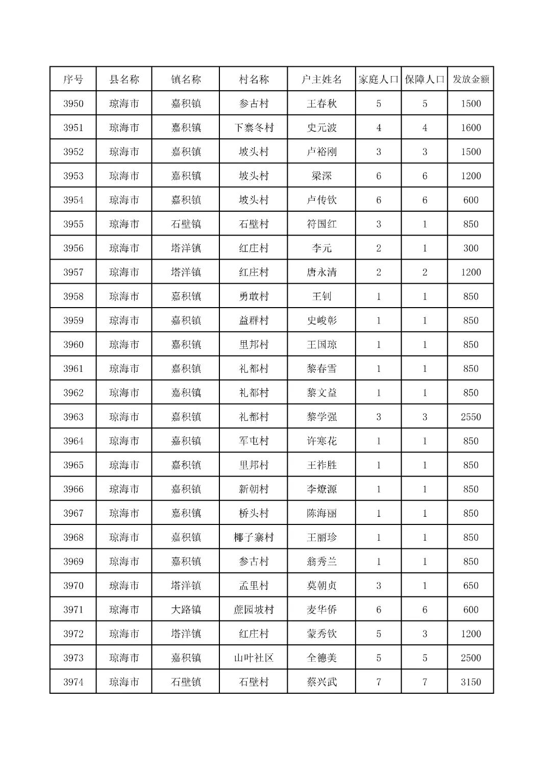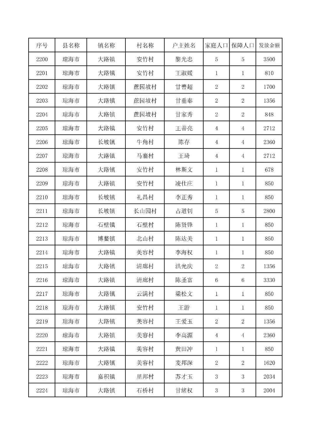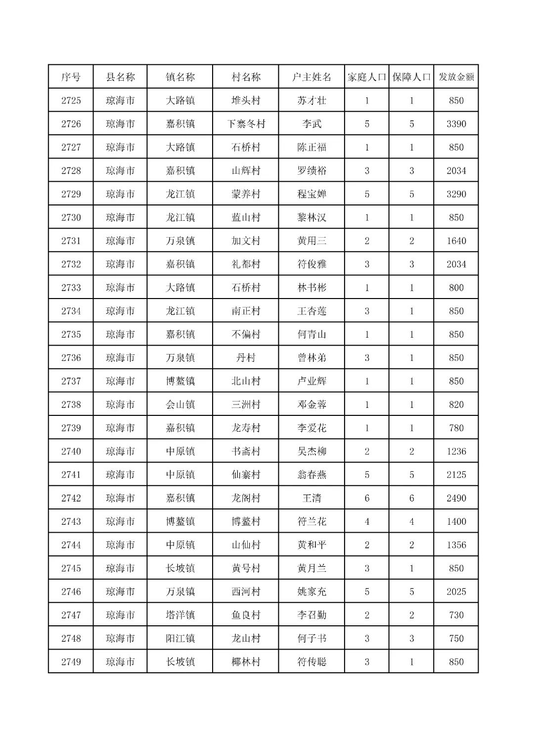 琼海市 2026年1月份城乡低保、特困人员长期公示 ...
