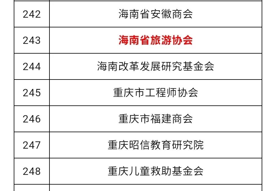 海南省旅游协会入围第五次“全国先进社会组织”拟表彰名单