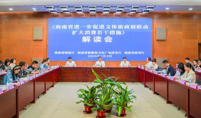 3月3日上午,省财政厅、省旅游和文化广电体育厅、省商务厅联合在海口召开《海南省进一步促进文体旅商展联动扩大消费若干措施》解读会,相关部门就各自领域介绍政策修订的意义进行解读。我省在原有20条措施基础上,优化了9条措施,新增了4条措施,旨在持续推动海南国际旅游消费中心和海南自贸港建设,推动“广电+旅游”深度融合发展。省旅游协会会长邹贤锋参加了此次会议。