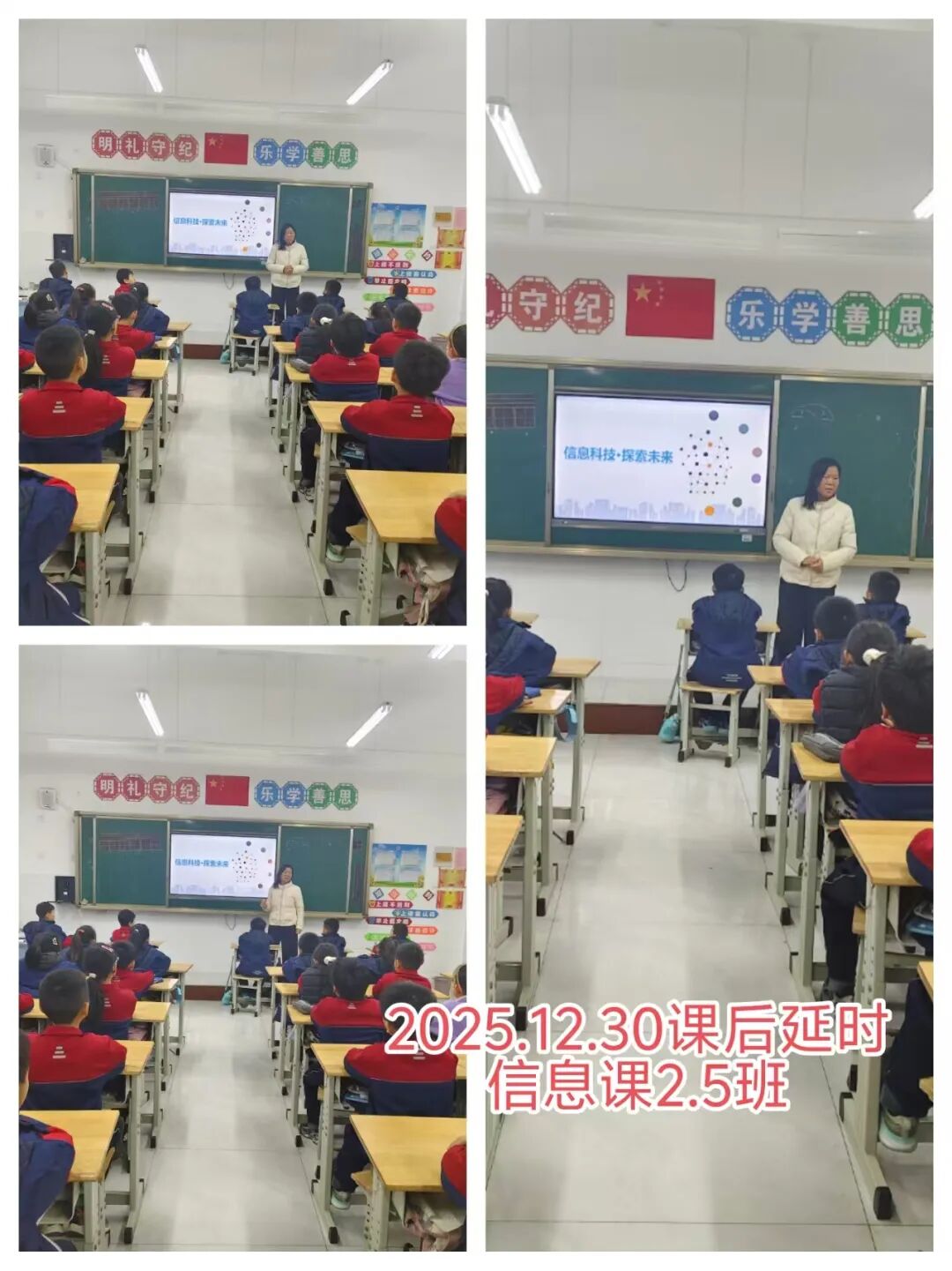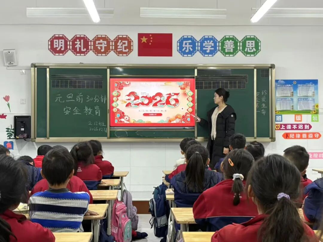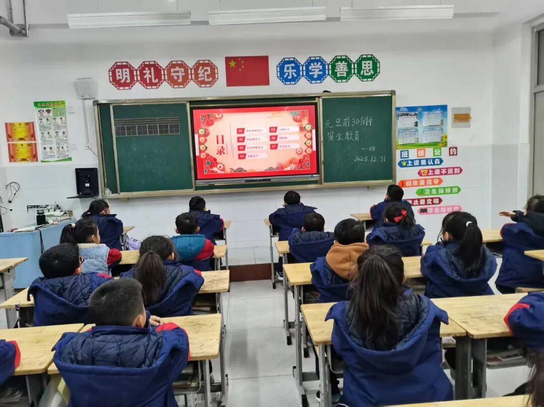 本次主题班会紧扣“安全第一、预防为主”的核心原则,各班班主任结合小学生年龄特点与假期安全风险特点,精心准备了教育内容,通过案例讲解、安全警示视频播放、互动问答等丰富形式,全方位普及安全知识。在交通出行安全环节,班主任重点强调了元旦假期出行高峰的交通注意事项,提醒学生严格遵守交通规则,着重强调未满12周岁孩子不能骑自行车上路,未满14周岁的孩子不能骑电动自行车上路。不乘坐无牌无证、超载超员的交通工具,过马路时做到“一停二看三通过”,杜绝闯红灯、逆行等危险行为;在消防安全板块,详细讲解了冬季火灾预防要点,包括居家用电安全、正确使用取暖设备、禁止燃放烟花爆竹等内容,并结合典型案例讲解了火灾逃生技巧;在饮食安全方面,引导学生树立健康饮食观念,拒绝“三无”食品、过期变质食品,避免暴饮暴食;同时,班主任还针对冬季防溺水安全、居家安全、户外活动防护、网络安全等内容进行了全面宣讲,叮嘱学生远离危险水域、不进入人员密集的危险场所,不轻易泄露个人信息,谨防网络诈骗。