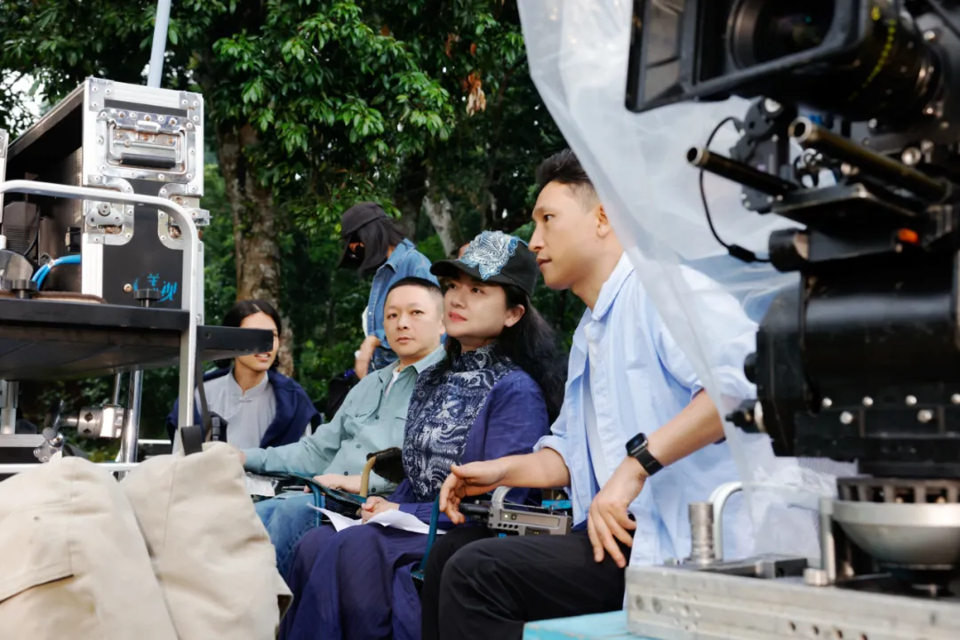 海南省影视家协会主席、艺术总监林青(中)与制片人符兴旺(左)、导演王威(右)在MV《无恙》拍摄现场