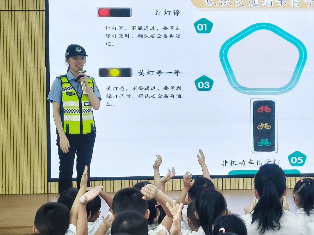 9月8日开学初期,我园联合文昌市公安局交警大队文城中队,开展“开学第一课 交警叔叔进校园”主题活动,向师生宣传安全出行知识。
