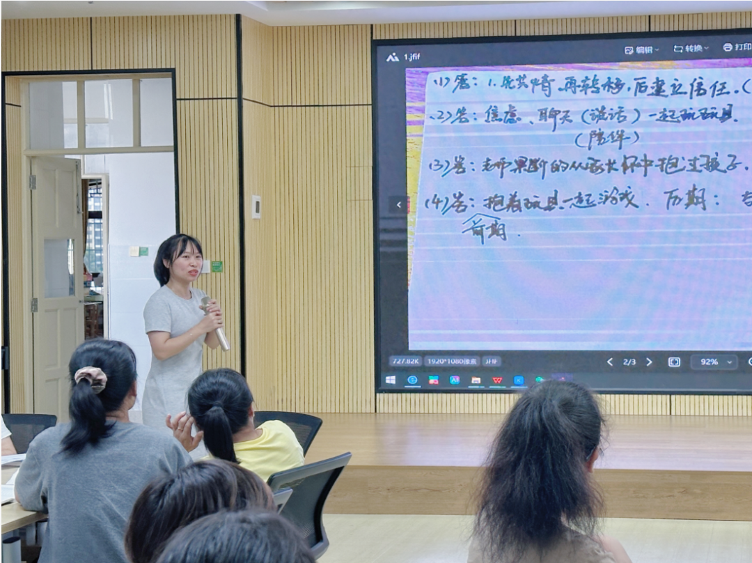 2025年9月18日下午,我园开展“交流互学,共促成长”工作经验分享交流活动。文昌市各幼儿园教师参加。此次活动通过环境观摩、专题分享等形式,搭建了一个相互学习的交流平台。