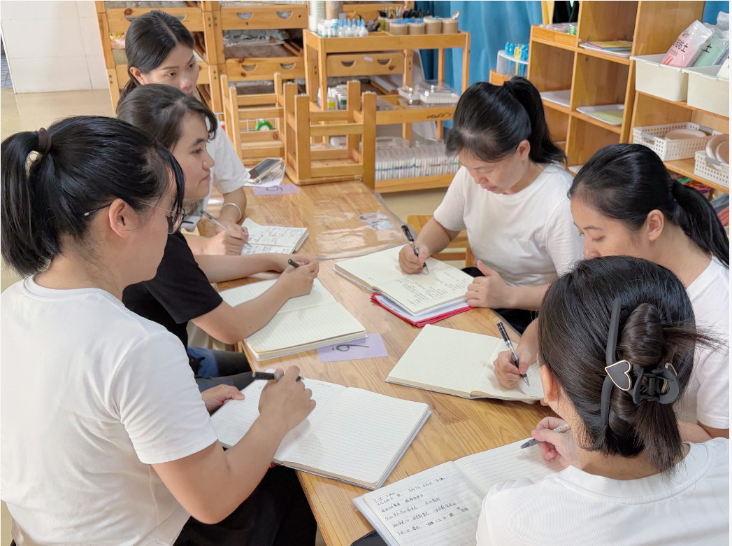 2025年9月16日,中班组教师围绕“中班幼儿进餐习惯培养”开展教研,探讨通过榜样示范、游戏渗透等方式,引导幼儿正确使用餐具、安静进餐、不挑食,提升自理能力,培养良好饮食习惯。