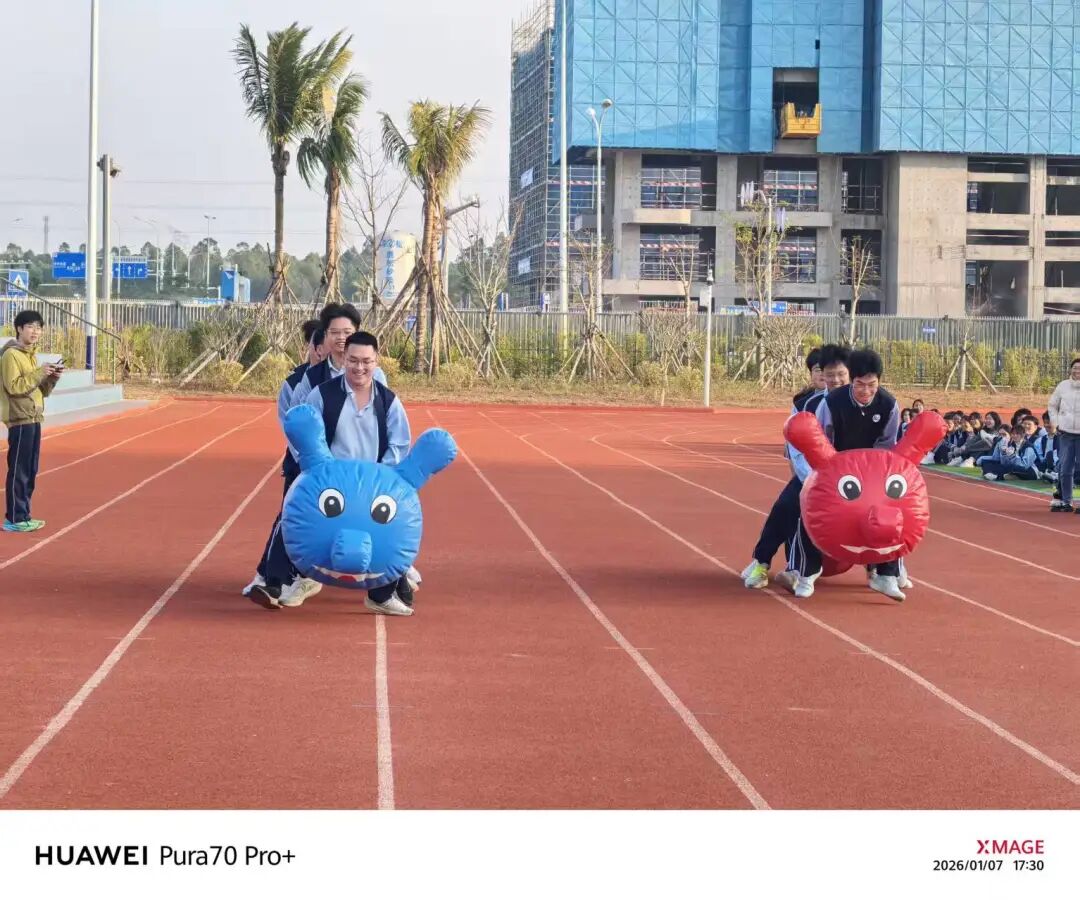 简讯: 高二年级组织趣味活动,师生进行毛毛虫赛跑。