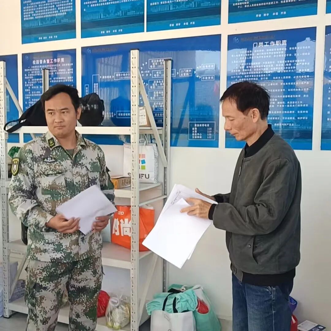 简讯: 教官组织门岗开会,加强门岗人员车辆登记以及学生请假外出核对。