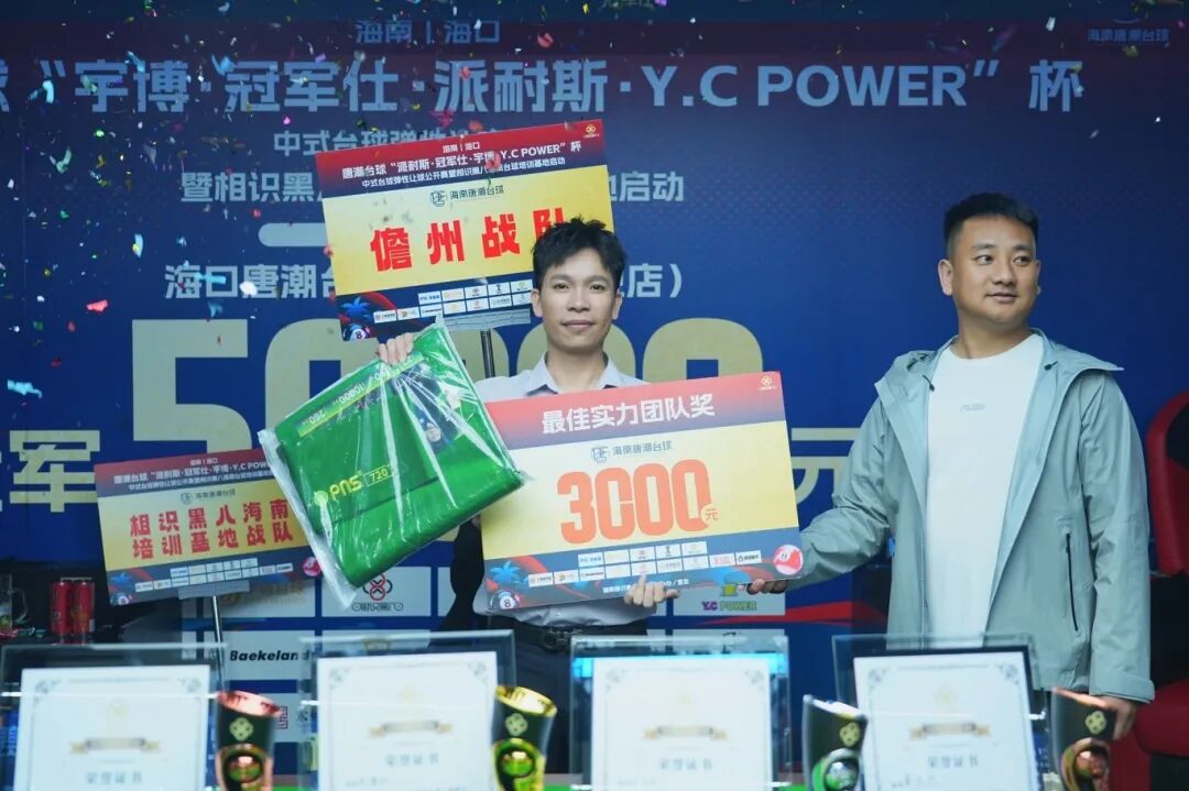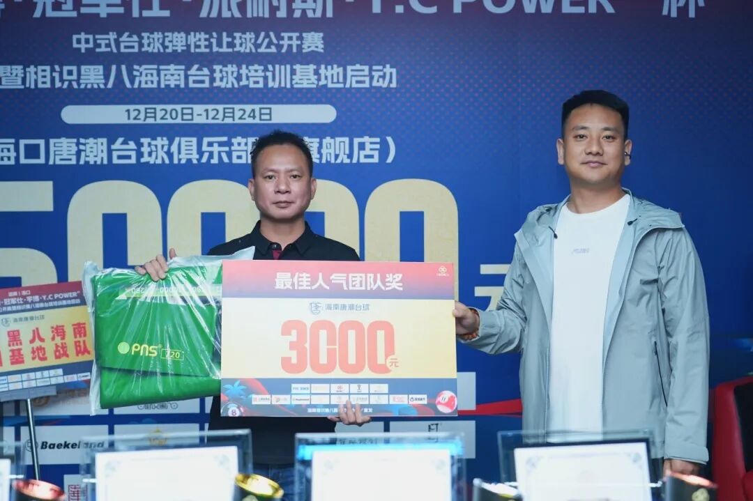 最佳人气团队奖:最终相识黑八海南台球培训基地战队(队长:王多安),以13人的庞大阵容与超强凝聚力,成为赛场内外最活跃的团队。