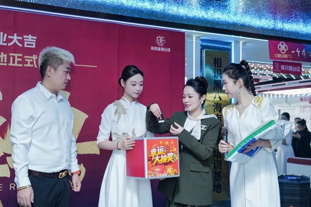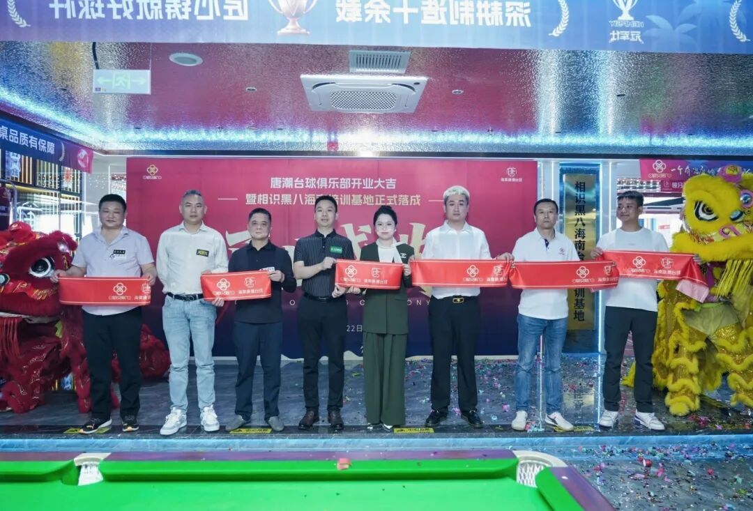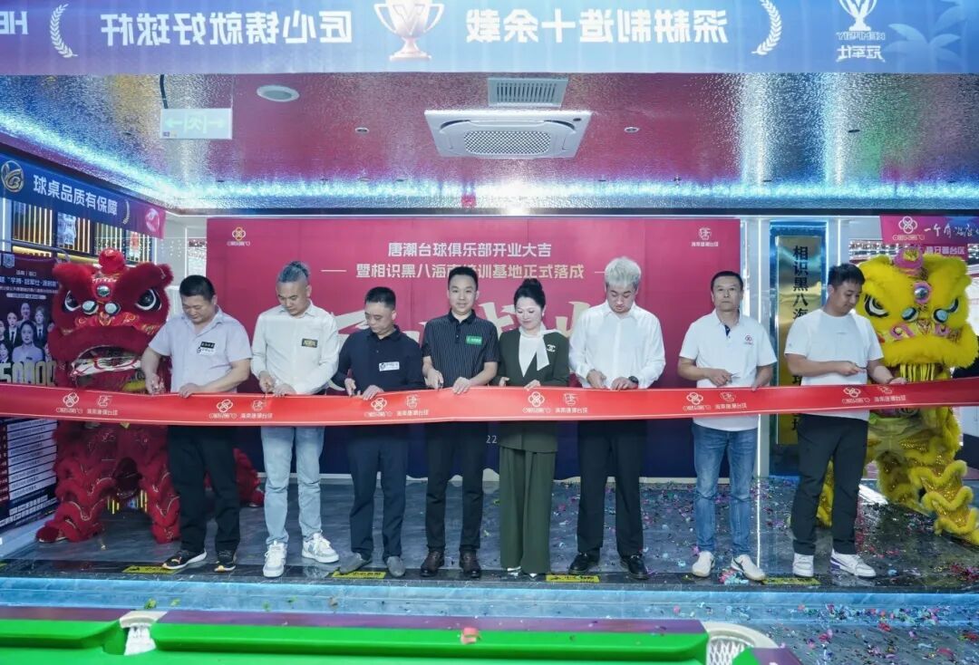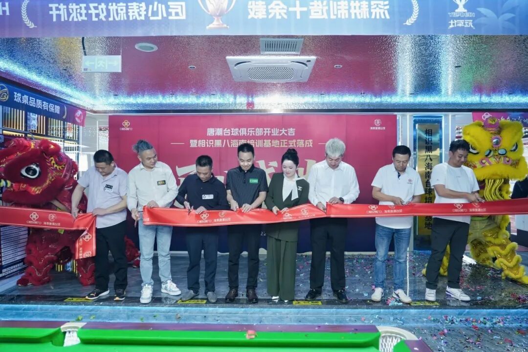 吉时已至,多位行业领导与品牌方代表共同为相识黑八海南台球培训基地和唐潮台球俱乐部开业剪彩。金剪落下,礼花漫天,标志着这个高标准台球空间正式开门迎客,必将成为海南台球爱好者心中的新地标。