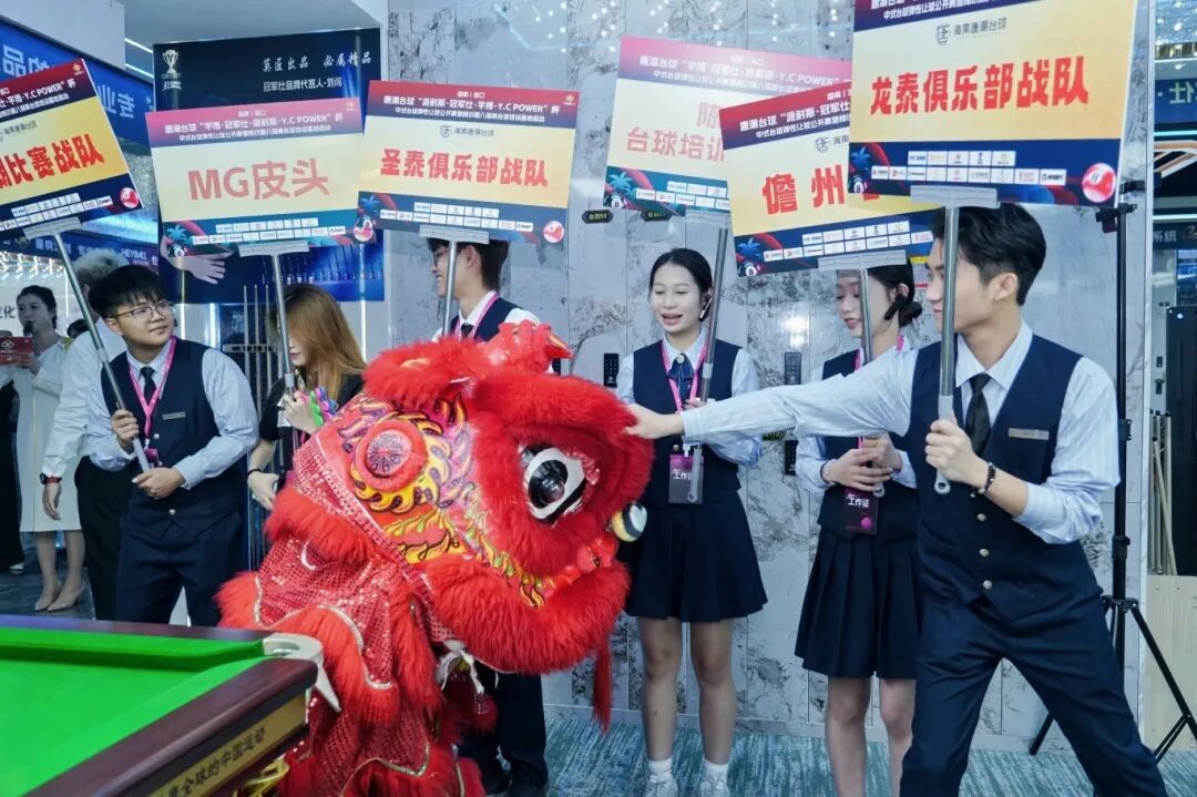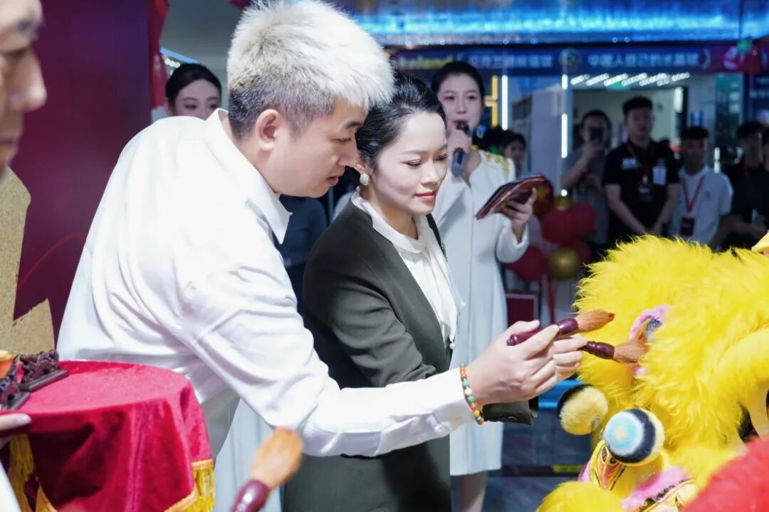 传统舞狮点睛仪式隆重举行,领导嘉宾执笔为祥狮注入“生意兴隆、客源广进、宏图大展”的灵气。祥狮采青纳福,将象征“生财”的好运洒遍全场,预示着唐潮台球事业鹏程万里。