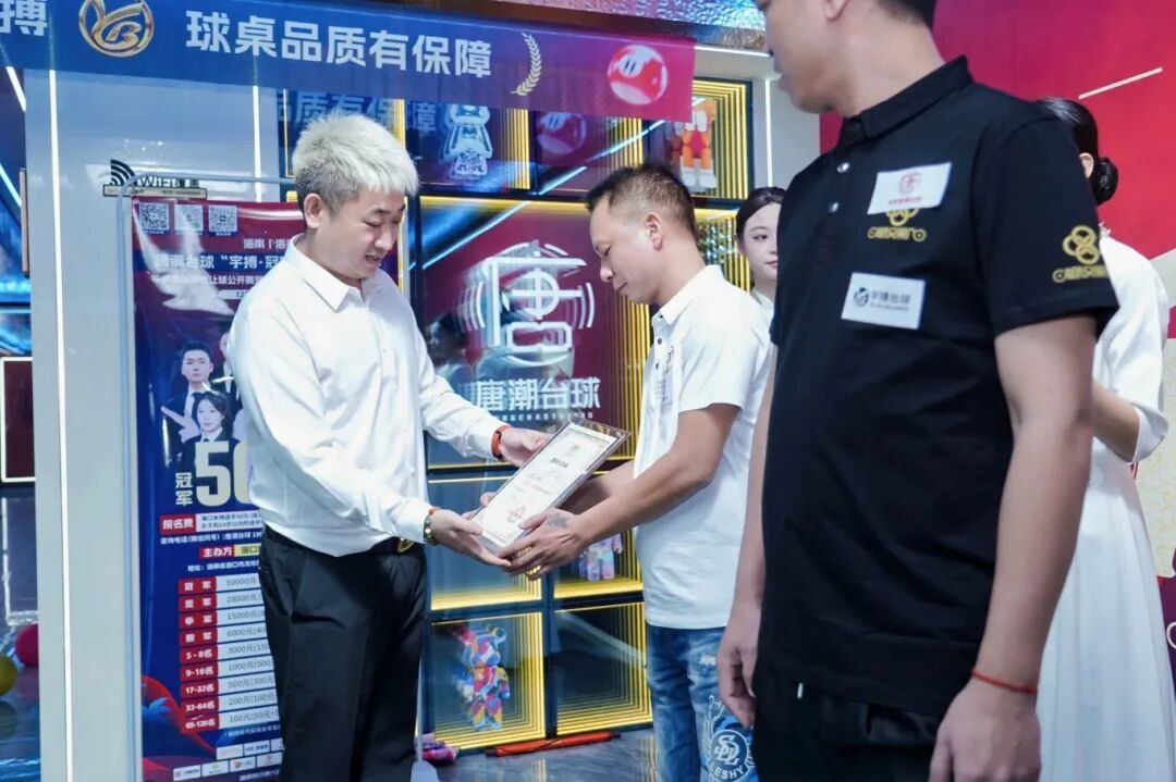 品牌缔结:活动现场,与湖南宇搏体育用品有限公司(宇搏台球桌)、常州市莫匠台球有限公司(冠军仕球杆)、常州派瑞斯纺织有限公司(派耐斯台呢)等业界领军品牌达成深度战略合作,构建了从硬件、器材到软件服务的完整产业支持链。
