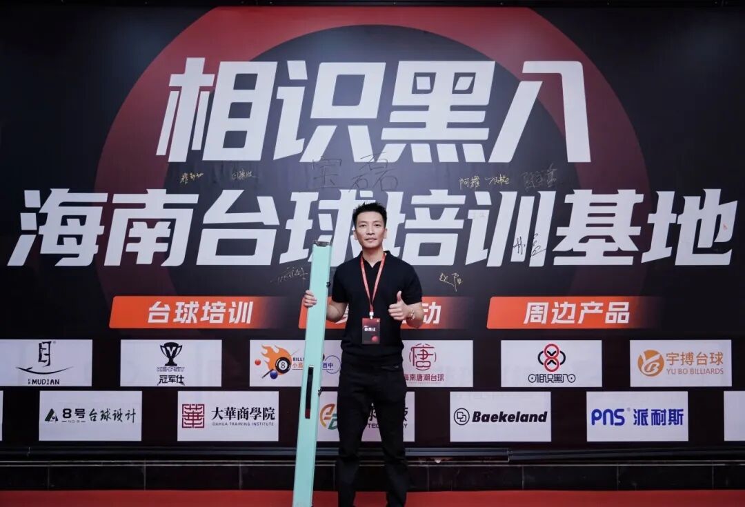 活动中,最具里程碑意义的时刻到来——“相识黑八海南台球培训基地”正式揭牌。