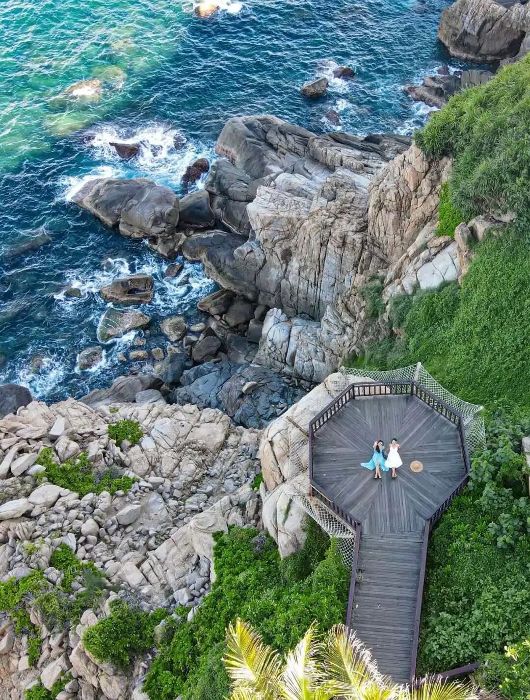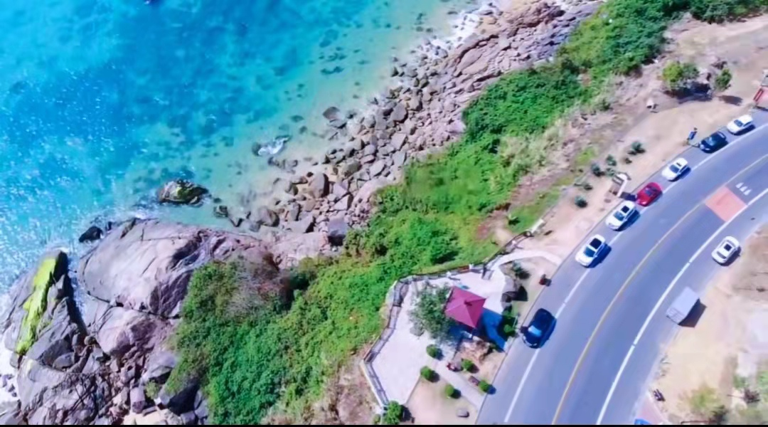 这段沿海悬崖公路太好拍,一定要带上无人机,视野超级棒,一半海水一半悬崖。除悬崖公路外,石梅湾长达6公里的碧海银滩,也是诸多电影与综艺的取景地。