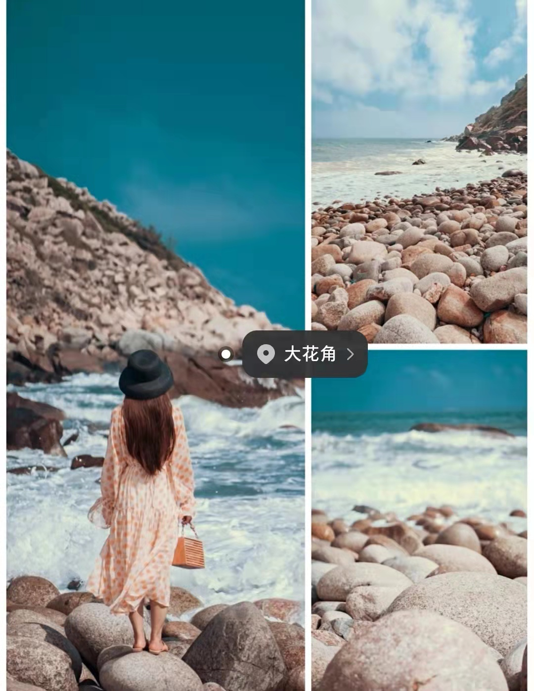 绝美野海滩,海岸线上布满硕大的鹅卵石,石头被海浪打磨得光滑圆润,拍照非常有大土澳的感觉。导航“大花角”即可,需要在树林中徒步10分钟,才能到大花角,建议穿方便走路的鞋。