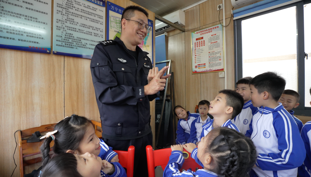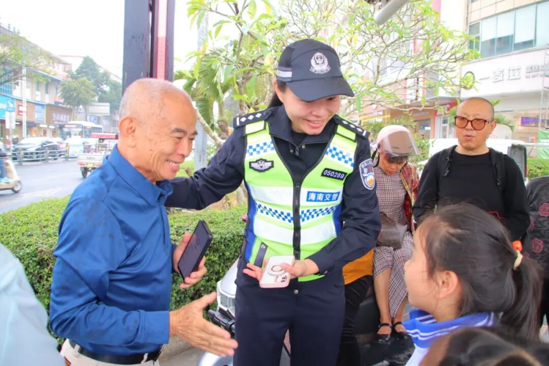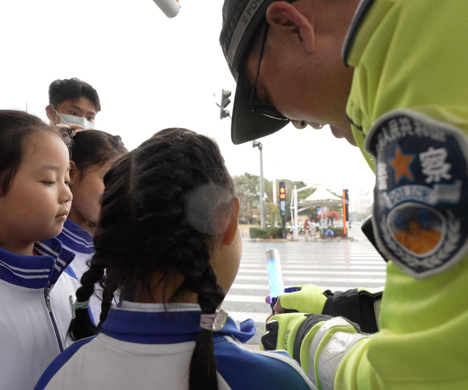 在交警带领下,小朋友们分组“上岗执勤”。在万宁文化商业广场十字路口,他们协助交警引导行人遵守红绿灯,骑车佩戴好安全头盔,提醒驾乘人员注意行车安全。面对来往的行人和车辆,起初小朋友们还有些紧张,但很快便进入状态,用稚嫩认真的声音提醒:“阿姨,过马路请不要闯红灯!”“叔叔,骑车请佩戴好安全头盔!”