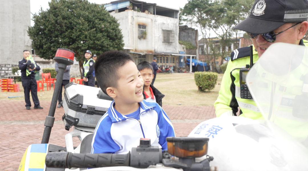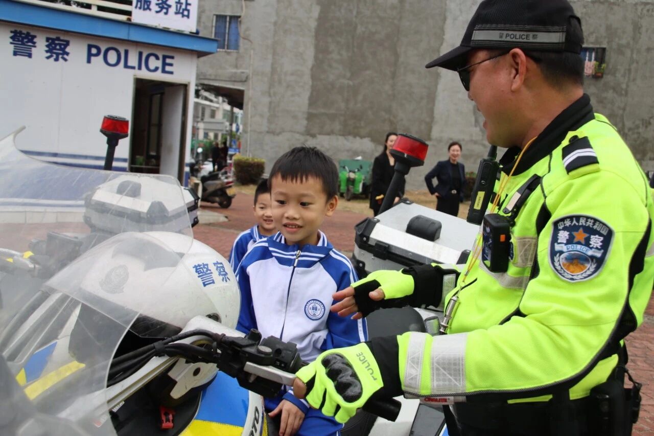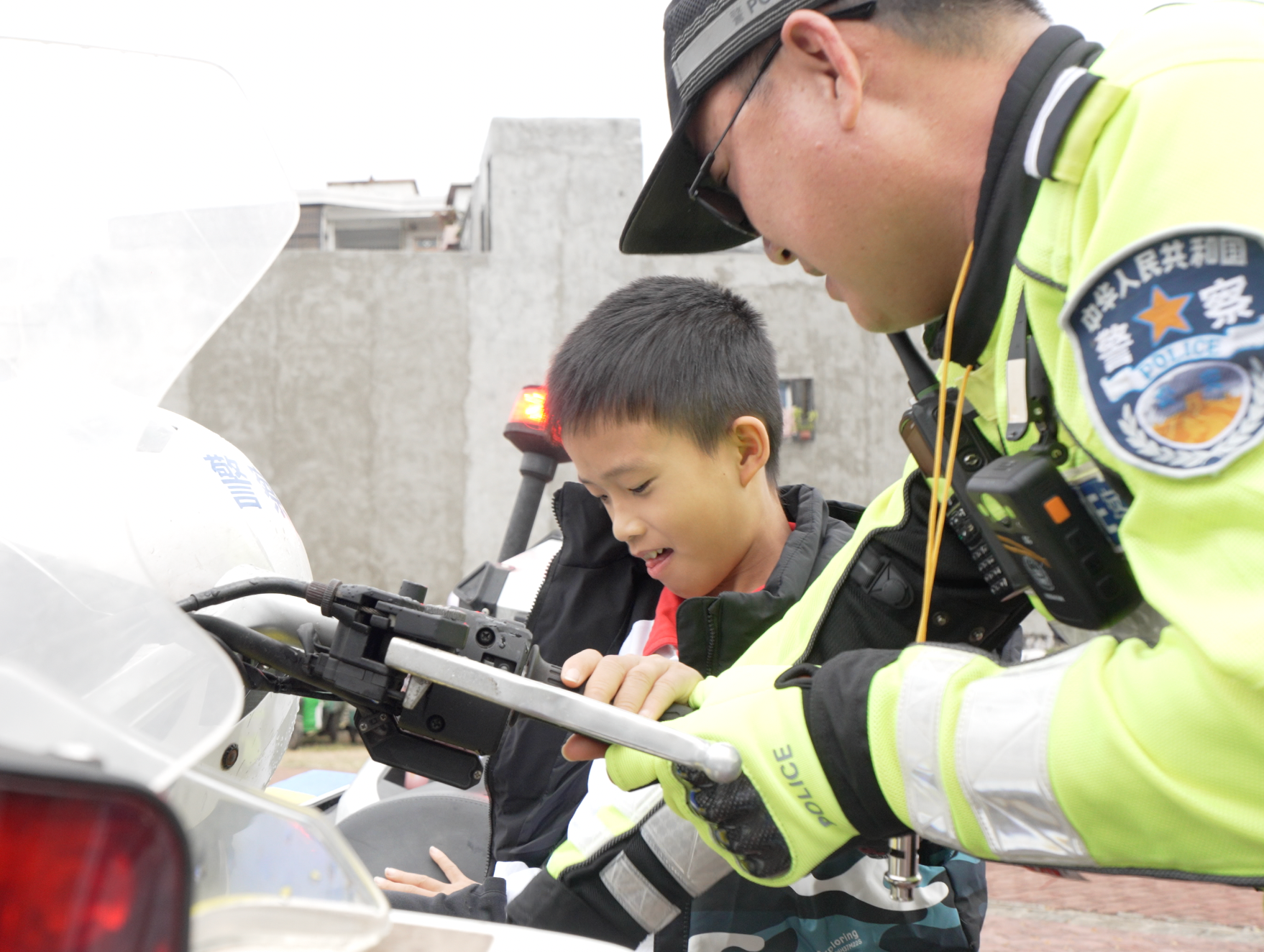 交警把孩子们稳稳抱上警用摩托车,让他们扶住车把,体验成为“小交警”的感觉。家长们纷纷举起手机,定格孩子惊喜与自豪的瞬间。