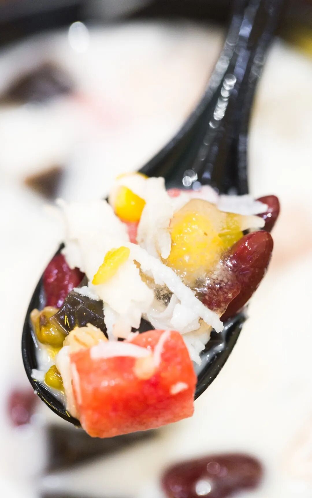 钟丽缇、张伦硕夫妇推荐的清补凉,是海岛的招牌甜蜜。椰奶打底,加入十多种杂粮水果,冰爽解暑。