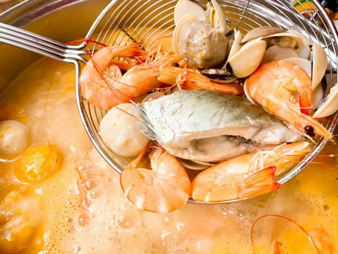 鲜活的鲍鱼、弹牙的海鱼、饱满的贝类,在酸辣汤底中涮煮片刻,便吸饱了汤汁的精髓,鲜味儿翻倍迸发。每一口都是酸辣鲜香的交织,酣畅淋漓。