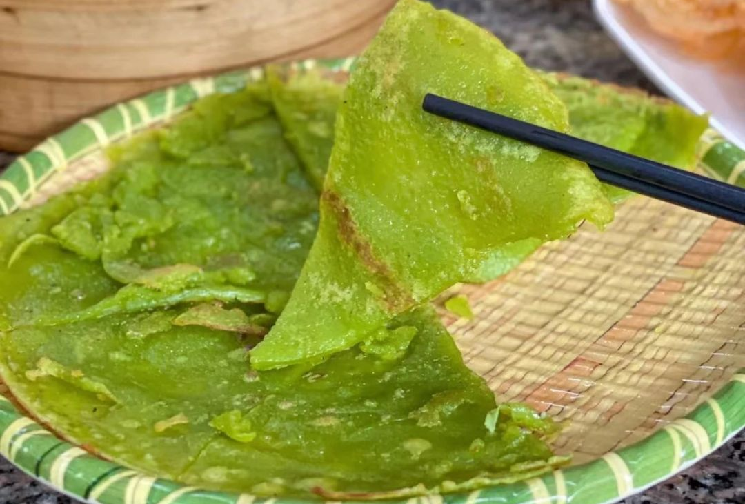 绿意盎然的斑斓风味,化身为千层糕等糯叽叽的点心,带着独特清香,演员林正峰前一天没有吃到,第二天直接点了一桌“斑斓全宴”。