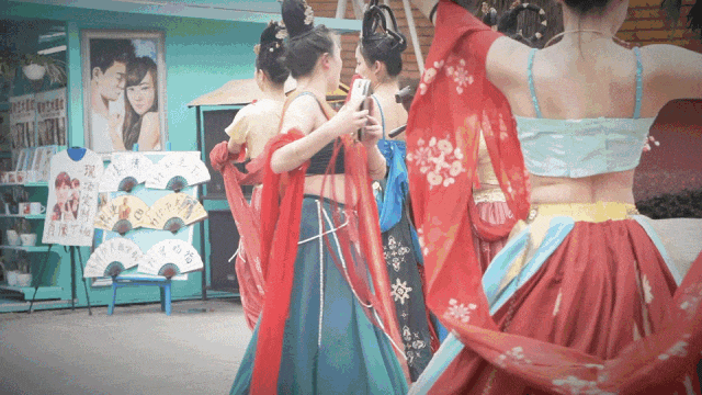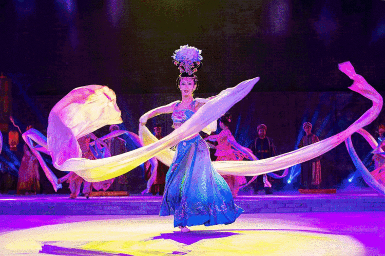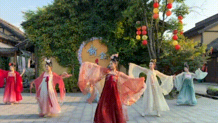 敦煌舞蹈一袭红色纱裙,袖舞飞扬身姿轻盈