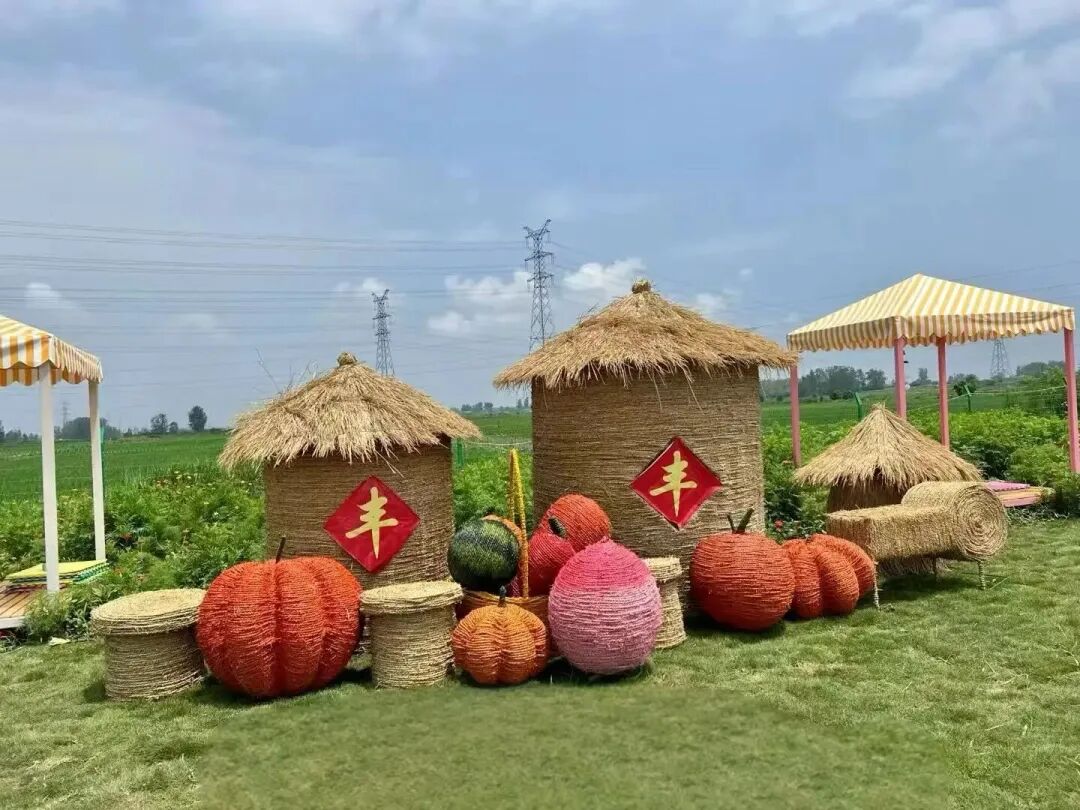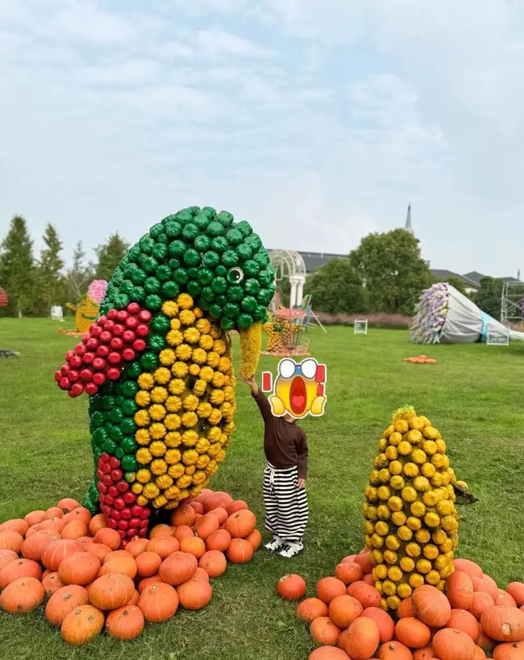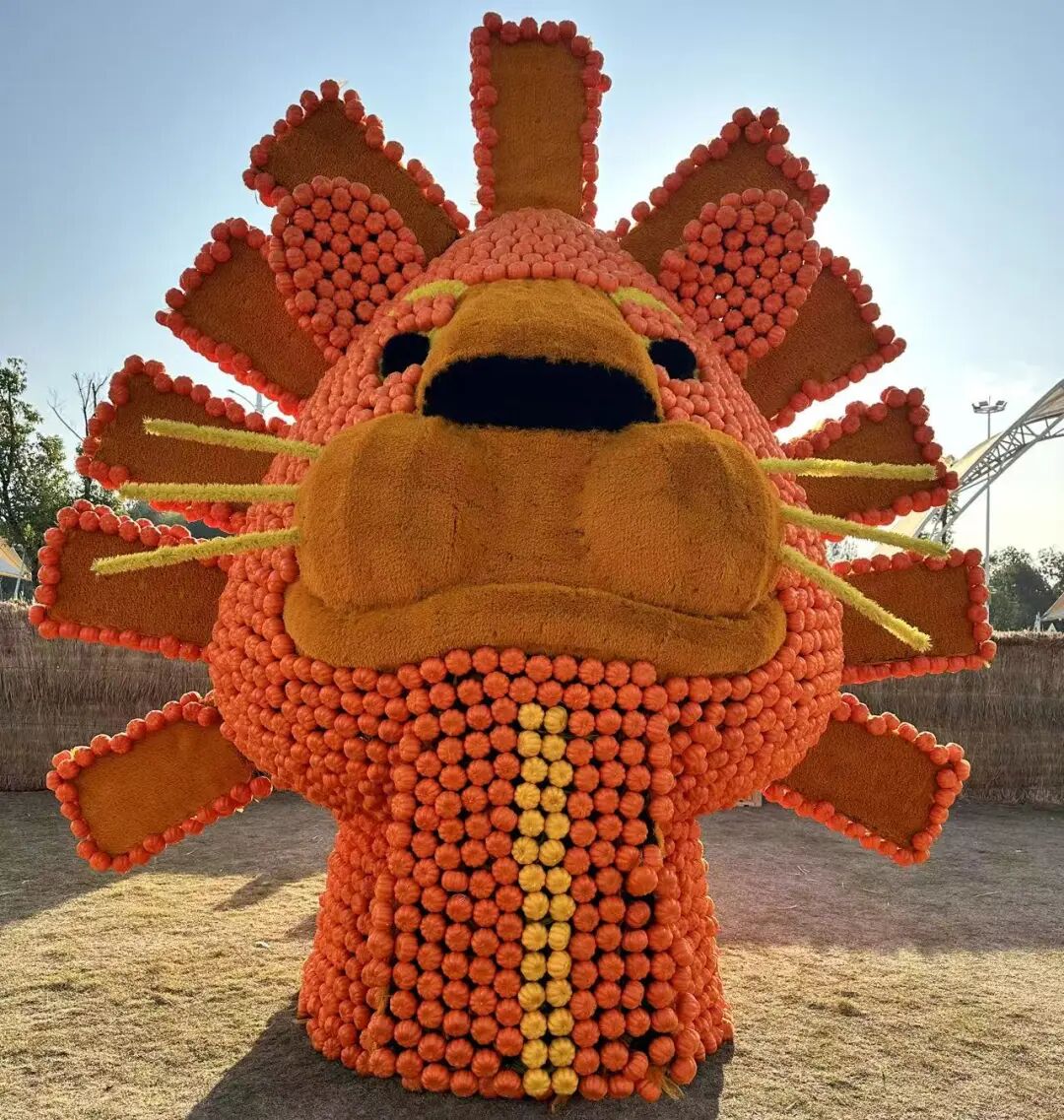 我们以南瓜和芦苇为元素堆积成一件件大地艺术作品涵盖海洋、森林、人文、科普等多个维度在丰收日里倡导“爱护自然”