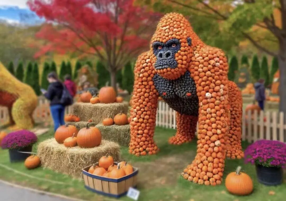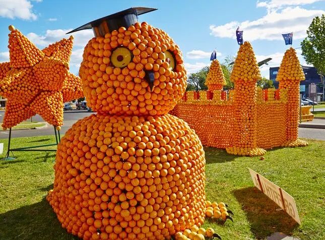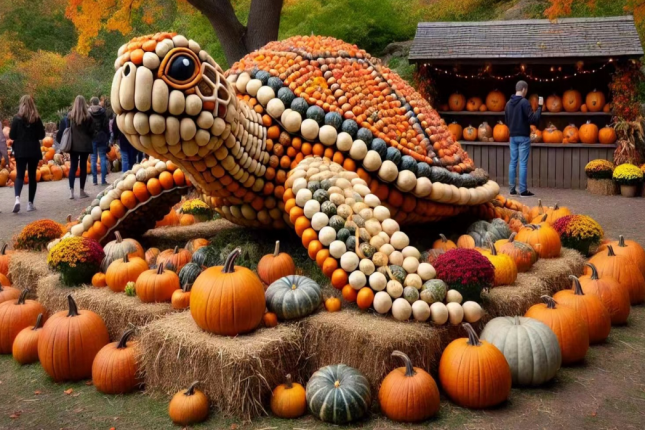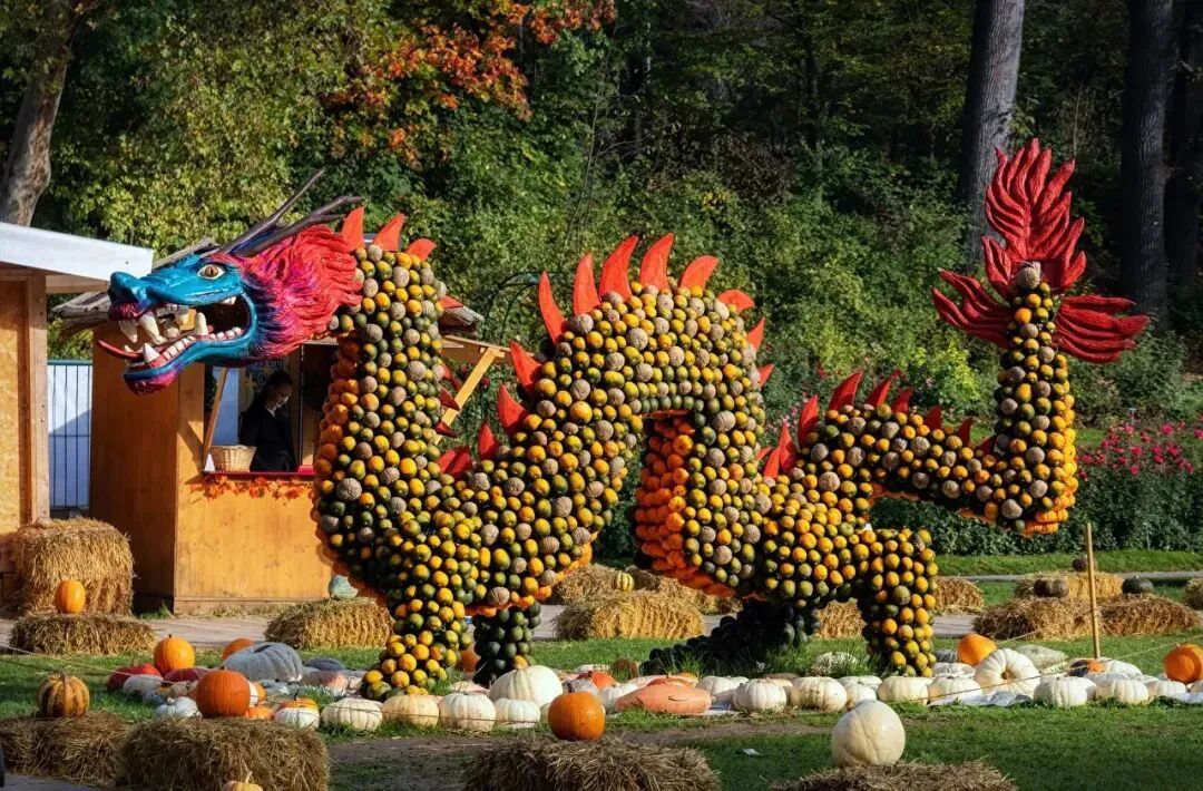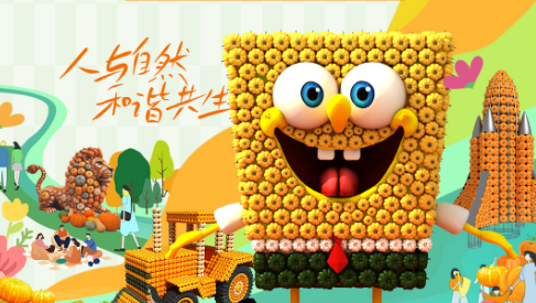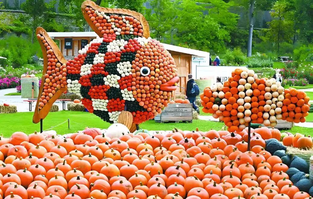 我们以南瓜和芦苇为元素堆积成一件件大地艺术作品涵盖海洋、森林、人文、科普等多个维度在丰收日里倡导“爱护自然”