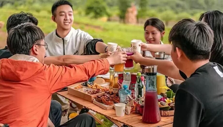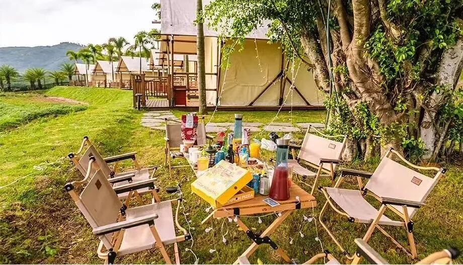 野餐营地所在的云舍松涛藏匿于一片郁郁葱葱的群山之中。阳光透过树叶的间隙洒在身上,美得如梦一般。