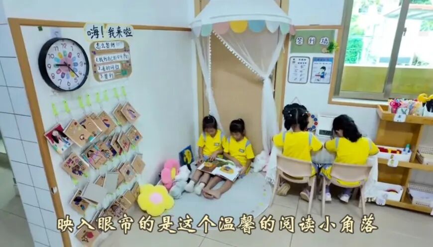 活动现场,集团各园区的参赛优秀视频依次播放,每一个视频都是一场视觉与心灵的盛宴。视频中,老师们首先介绍了班级图书角的创设理念,镜头流转间,科学布置、满溢书香的图书角,幼儿在全神贯注阅读的模样,还有摆满童趣作品的幼儿自制图书展示区,这些画面记录了教师们对阅读教育的用心与智慧,更见证着孩子们与阅读相拥的美好瞬间。