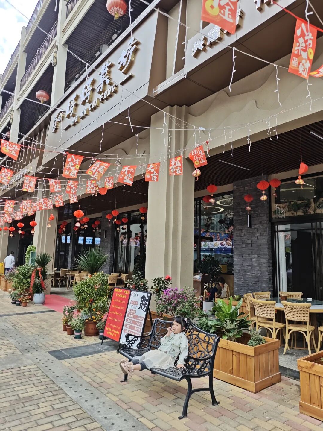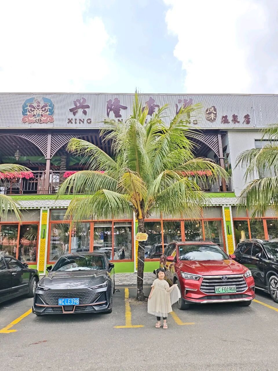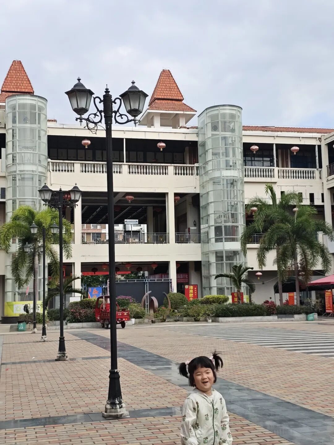 清晨的阳光透过椰叶洒在石板路上,我牵着四岁女儿小爱的手走进兴隆镇。