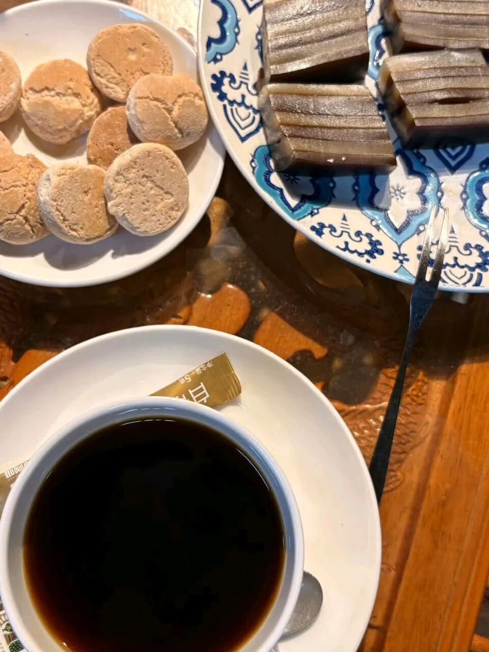 我们走进一家老式咖啡店,木质桌椅泛着岁月的光泽。
