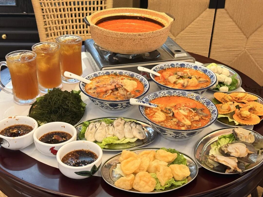 在酸辣鲜香的汤底里涮着脆嫩海鲜