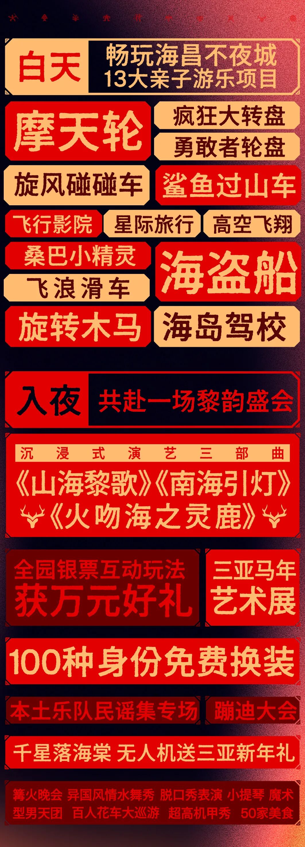 免责声明:本项目推广名为看见三亚沉浸式夜游部落。本宣传资料所发布时间为2026年2月,后期存在调整可能,恕不另行通知;本宣传资料部分素材为AI生成,仅供参考。“亿万富翁游戏”只是游戏名称,银票为虚拟游戏币,不具有现实意义。