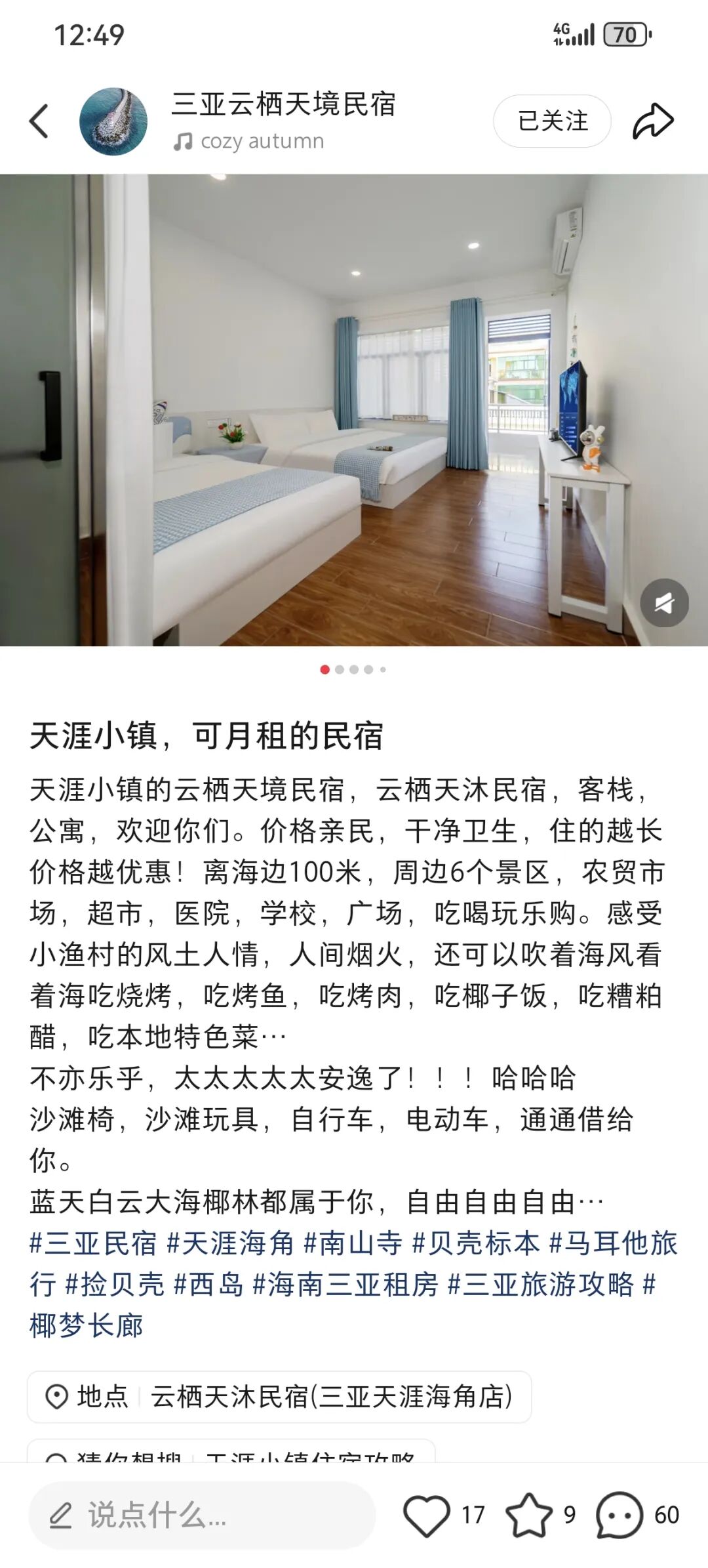 去年自驾去了七天,从海口自驾了一圈,在三亚只呆了三天,一直感觉在赶路,很累,玩的不自在,因此今年决定只在三亚的海边呆着,哪都不去,海边挖沙,玩水。