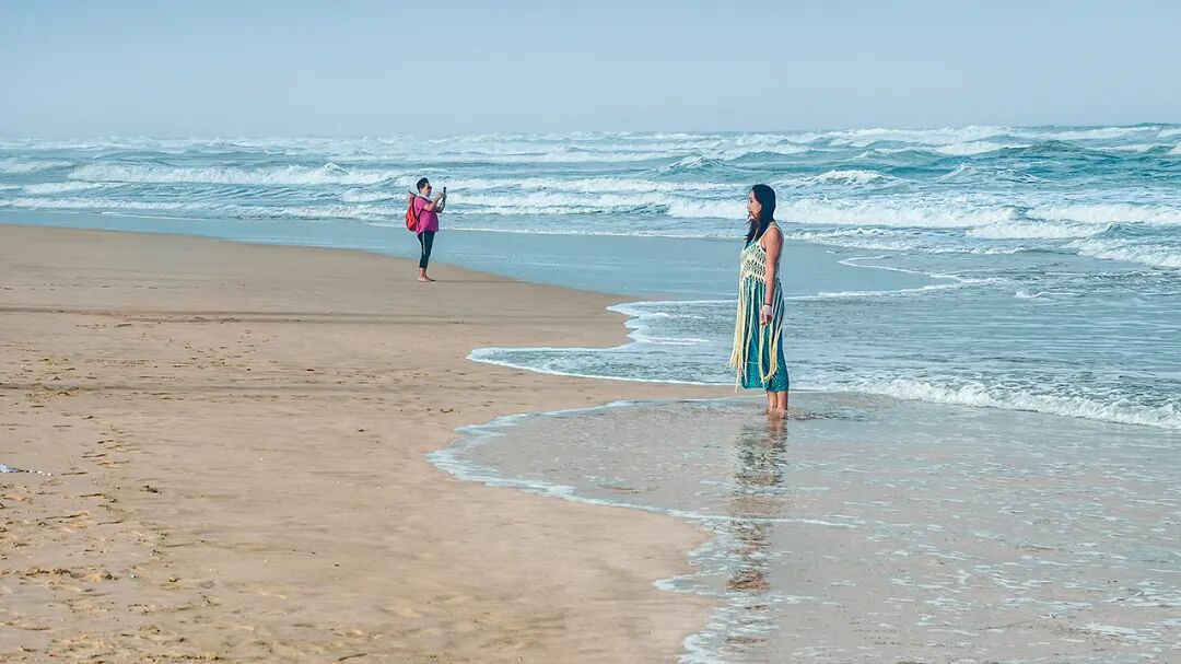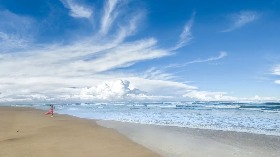 这里的沙质细腻、洁白,踩上去如同站在了面粉堆里,每当海水退潮时,这里的海滩能显露出长达百米以上,有的地方可长达200米,形成天然的“天空之镜”。