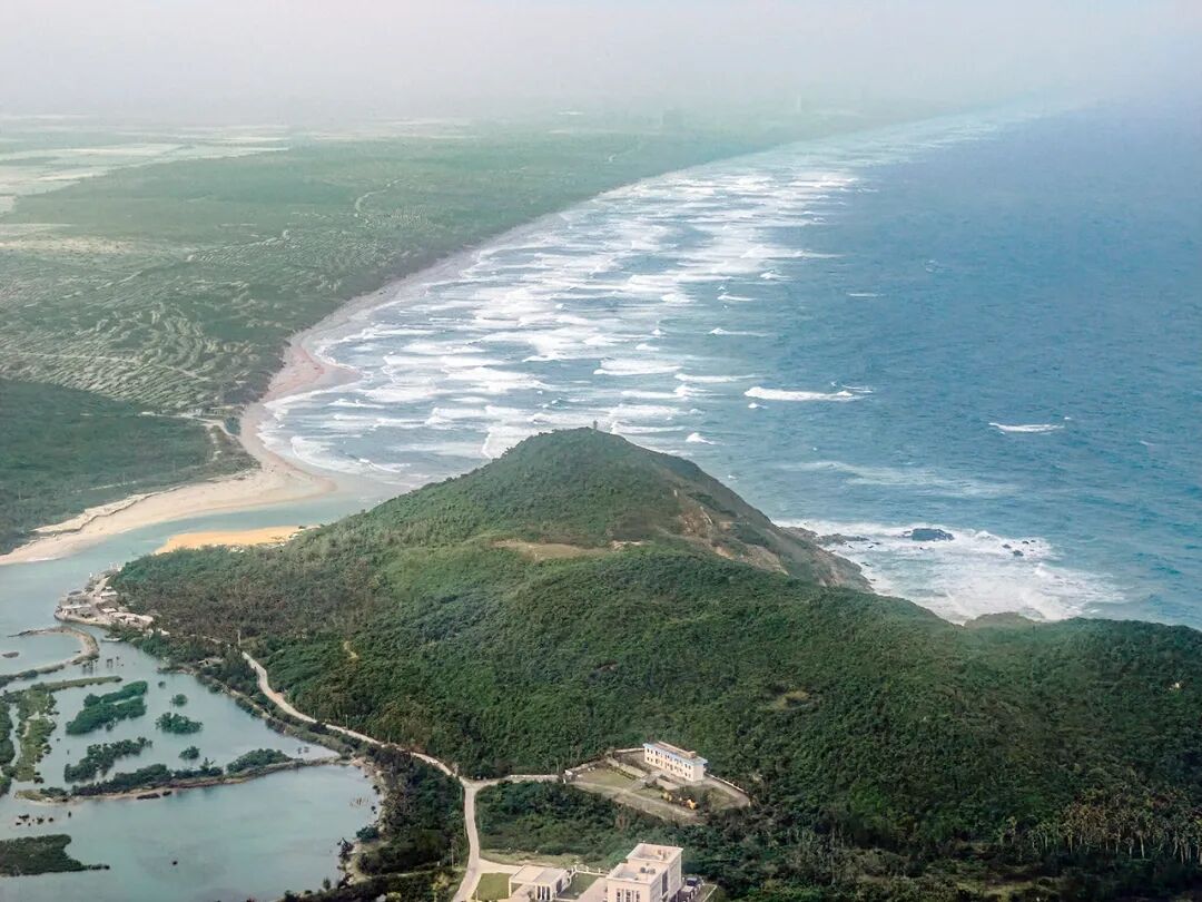 月亮湾位于海南文昌市铜鼓岭国家级自然保护区北部,横跨昌洒镇和龙楼镇,东临南海,南至宝陵河入海口,与铜鼓岭隔河相望。我们从铜鼓岭景区出来,由于导航设定的是“月亮湾”,于是导航将我们引上了环岛高速,开了长长的一段距离才到达月亮湾。