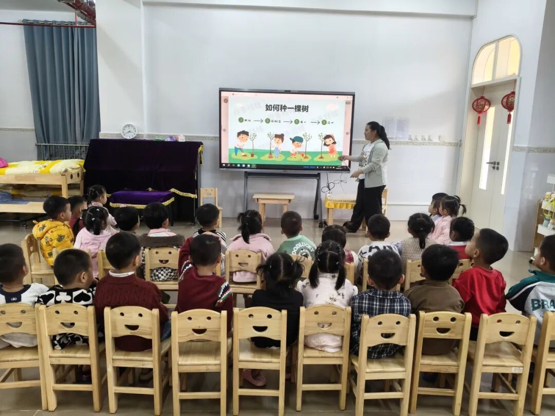 老师们通过各种方式向孩子们介绍“植树节”的由来、意义以及爱护小树苗的常识,小朋友们知道了我们可以做许多事情,保护树木、环境,让我们的家园变得更加美丽和温馨。