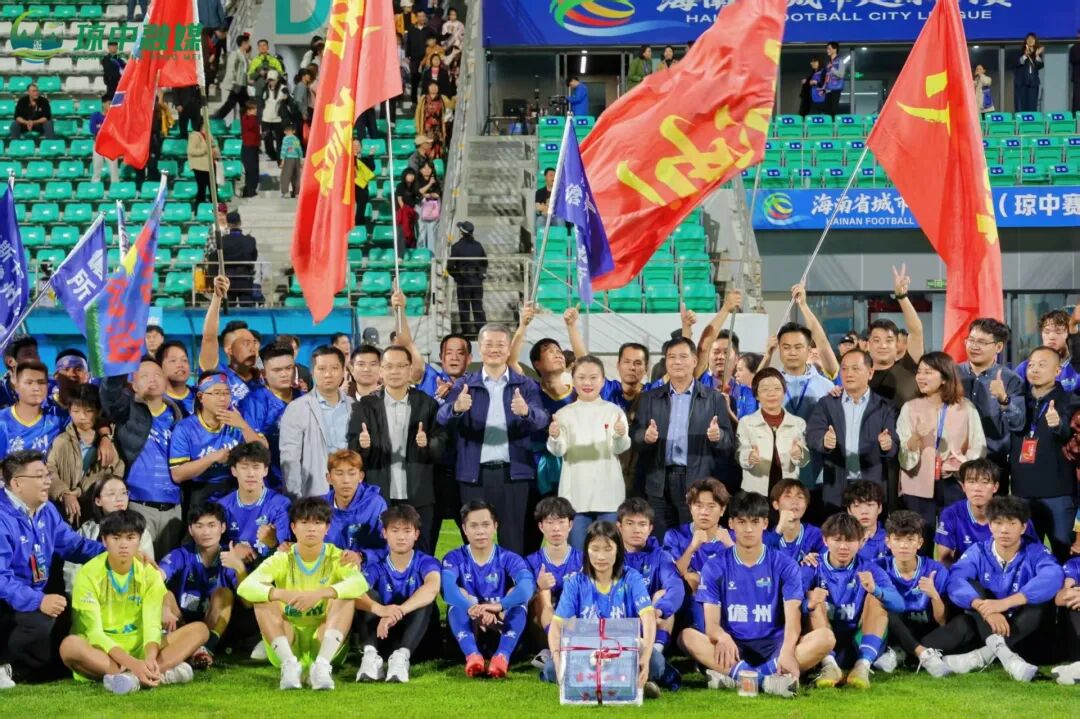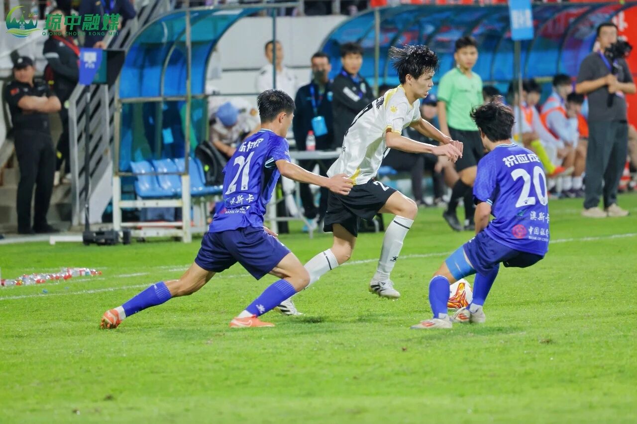 3月14日晚,“启航自贸港”第一届海南省城市足球联赛(琼超)首场半决赛在琼中女足训练基地一号球场圆满落幕,坐拥主场之利的南区头名琼中队迎战实力强劲的儋州队,最终琼中队凭借出色的表现以3:2击败儋州队取胜,成功锁定决赛入场券。本次半决赛采用单场决胜制,双方全力以赴、攻防交错。在这场单场决胜的半决赛中,双方开场便展开对攻,比赛陷入白热化阶段。琼中队率先破门,以2:1的优势进入到下半场,下半场开场儋州队全力开展进攻,并在比赛85分钟时将比分扳平。最终琼中队以更强的战术执行力,在下半场的伤停补时阶段攻入一粒进球,顺利晋级决赛。