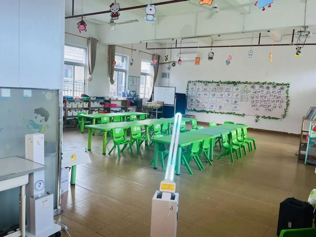 为了幼儿的健康,万宁光亚幼儿园对园内日常进行管控:如晨午检、紫外线消毒等。