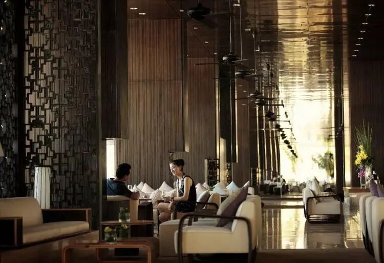 走进大堂,自然光透过镂空的墙体钻进室内,形成了斑驳的光影、曲廊回转,时尚典雅的宁静之美正是三亚半山半岛洲际度假酒店想要传递出来的度假讯息。