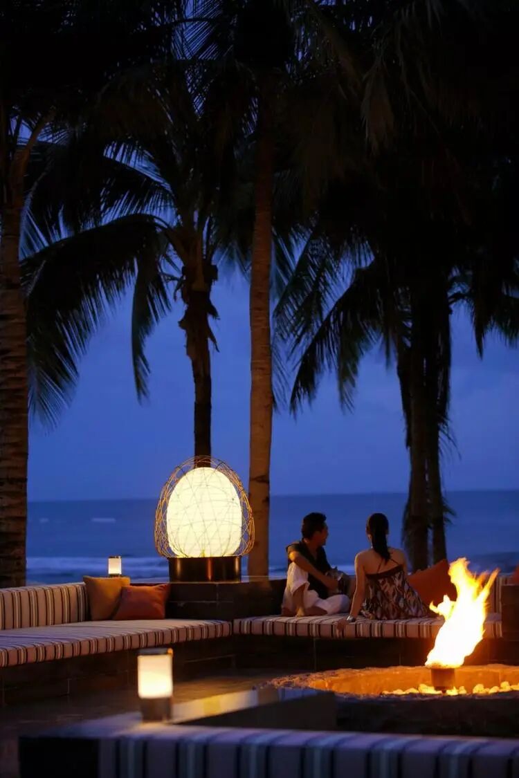 待到傍晚,摇曳椰影下的篝火沙龙,随着沙滩吧慢摇音乐的响起,点上一杯颜色暧昧不清的鸡尾酒,邂逅一场海风的沐浴。